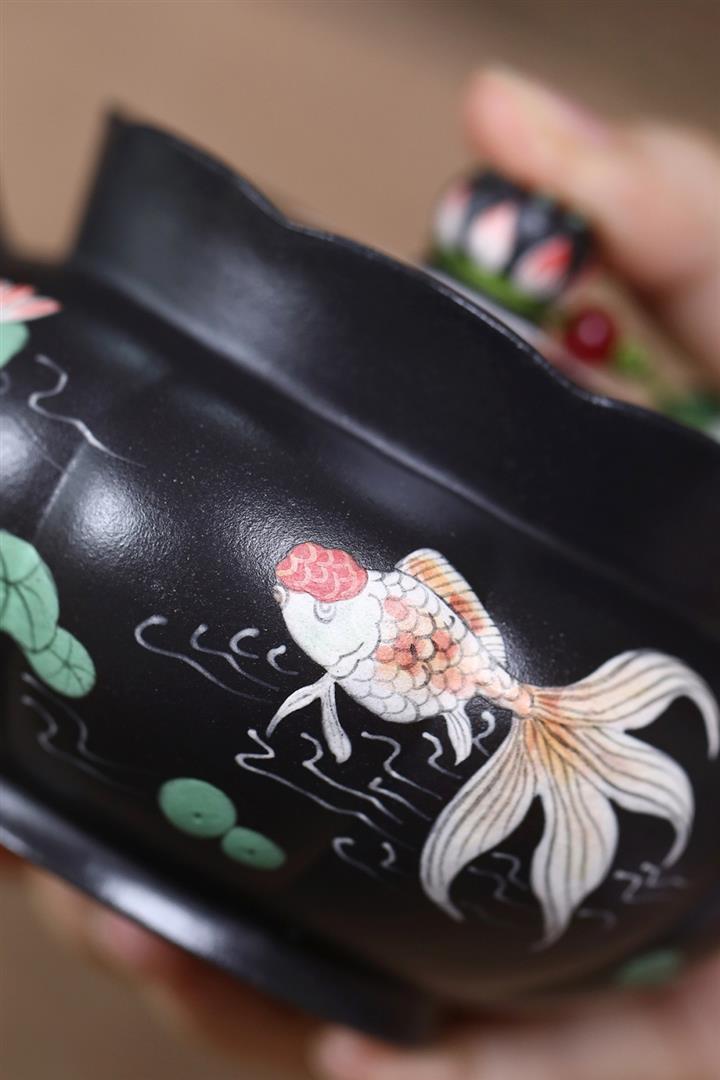 原礦老紫泥泥繪宮燈紫砂壺POT5792