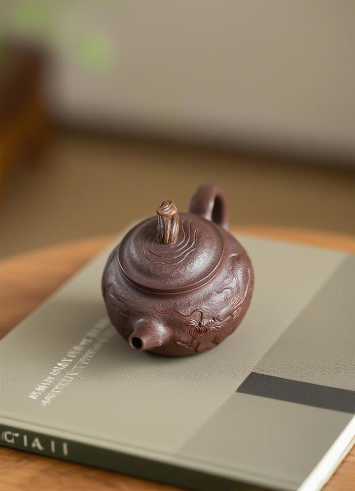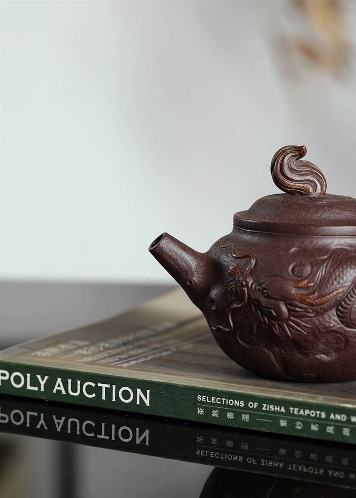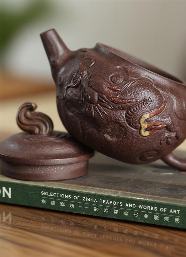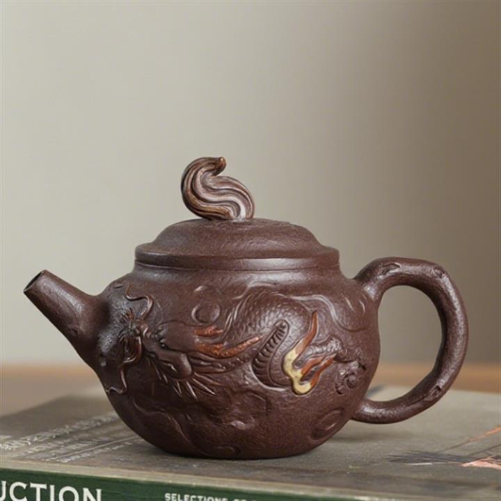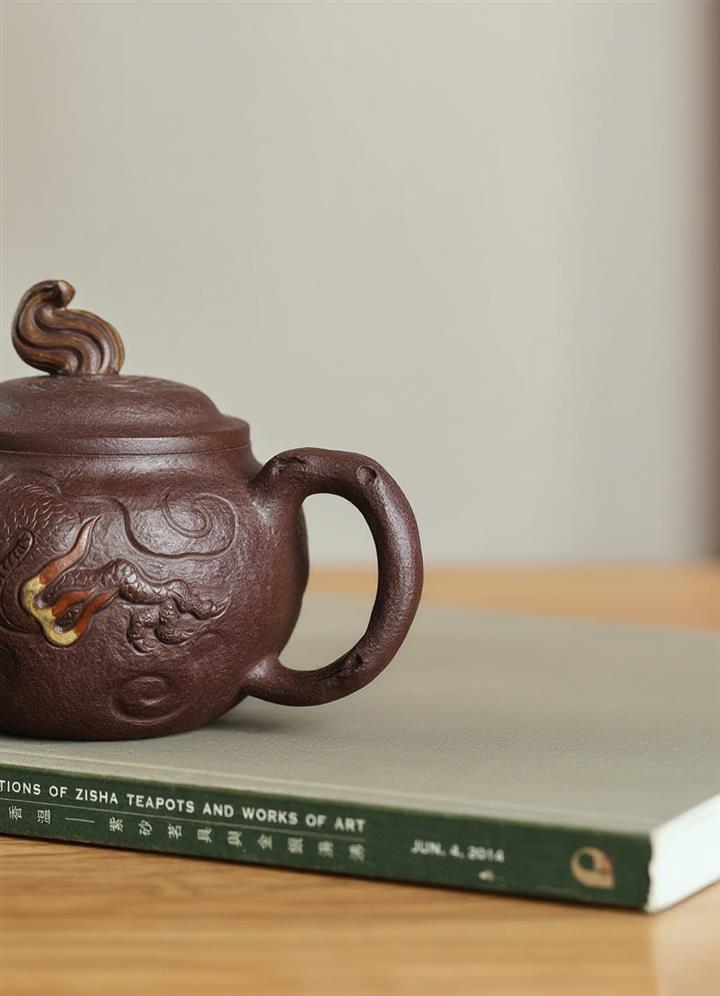 250cc原礦老紫泥浮雕祥龍戲珠茶壺POT7937