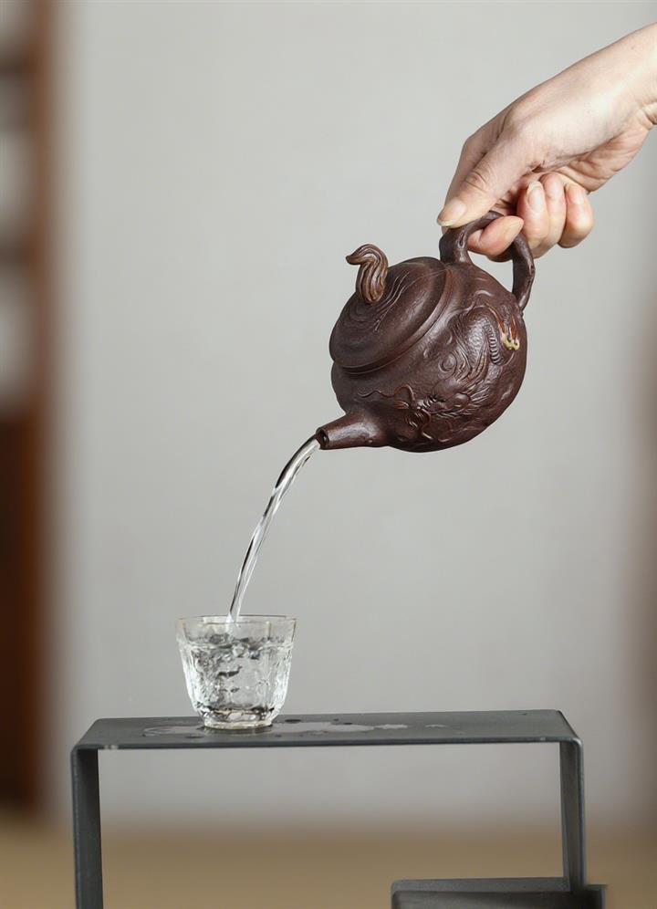 【泥料特點】砂土氣重,似淳實農民,日久使用,漸露鋒芒,養成變化,溫潤莊重。紫砂是壹種雙重氣孔結構的多孔性材質,氣孔微細,密度高。用紫砂壺沏茶,不失原味,且香不渙散,得茶之真香真味。紫砂使用越久,壺身色澤越發光亮照人,氣韻溫雅。紫砂壺長久使用器身會因撫摸擦拭,變得越發溫潤光澤。