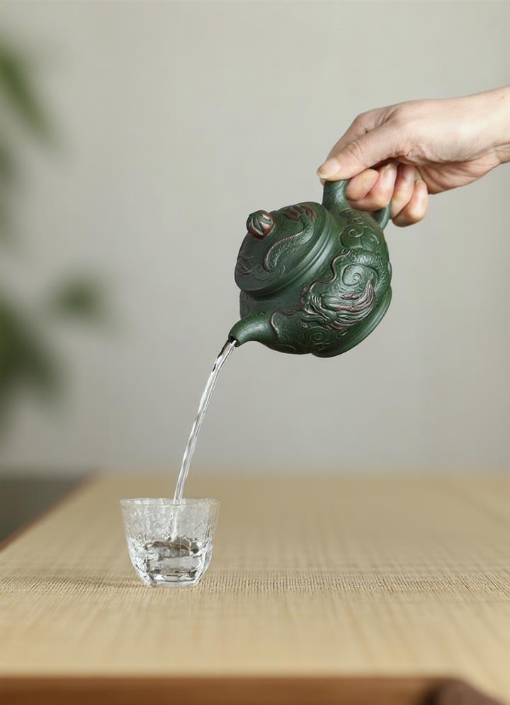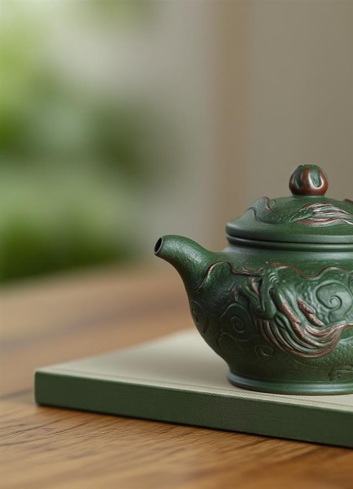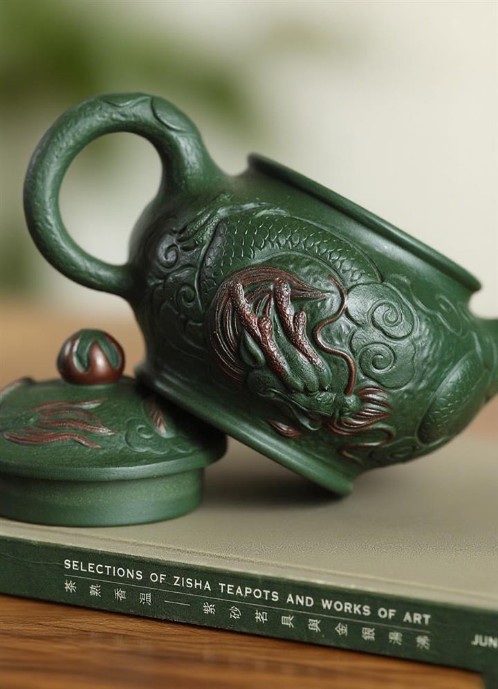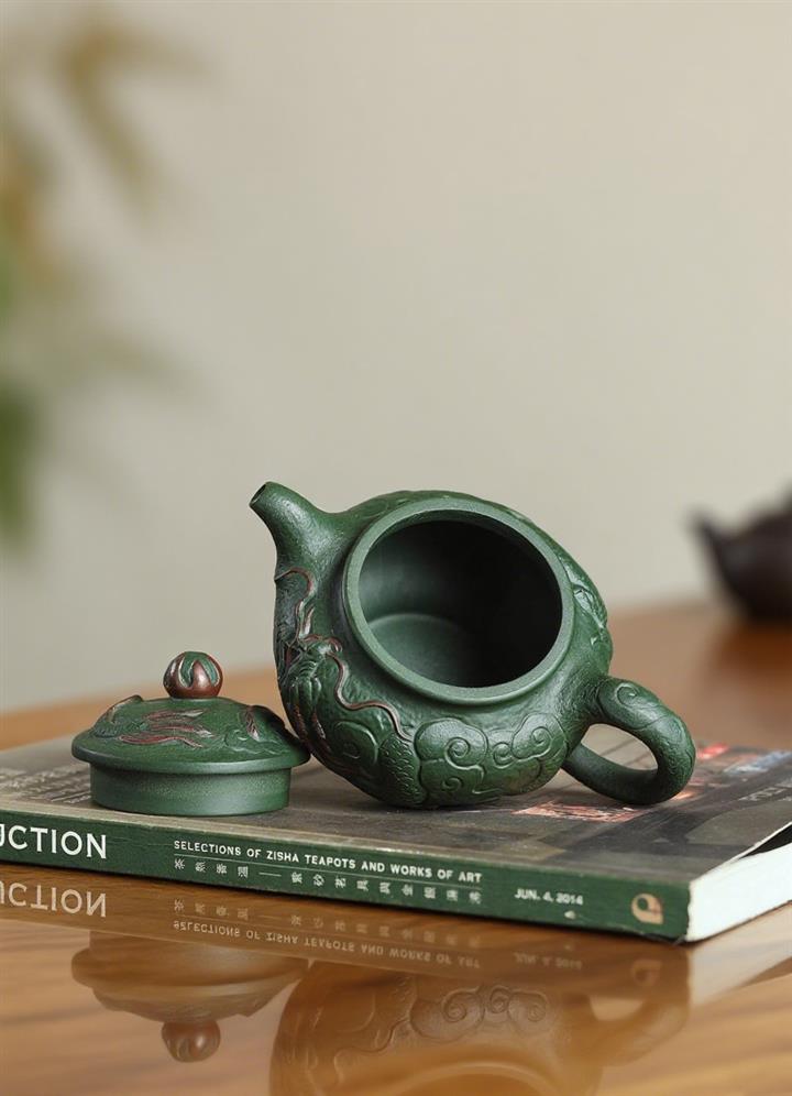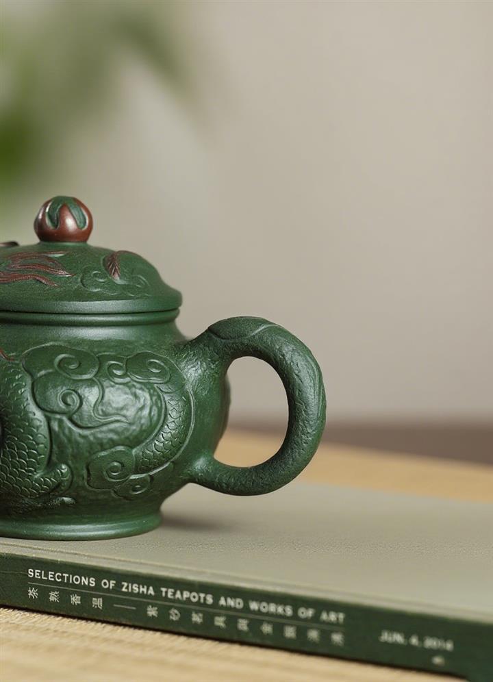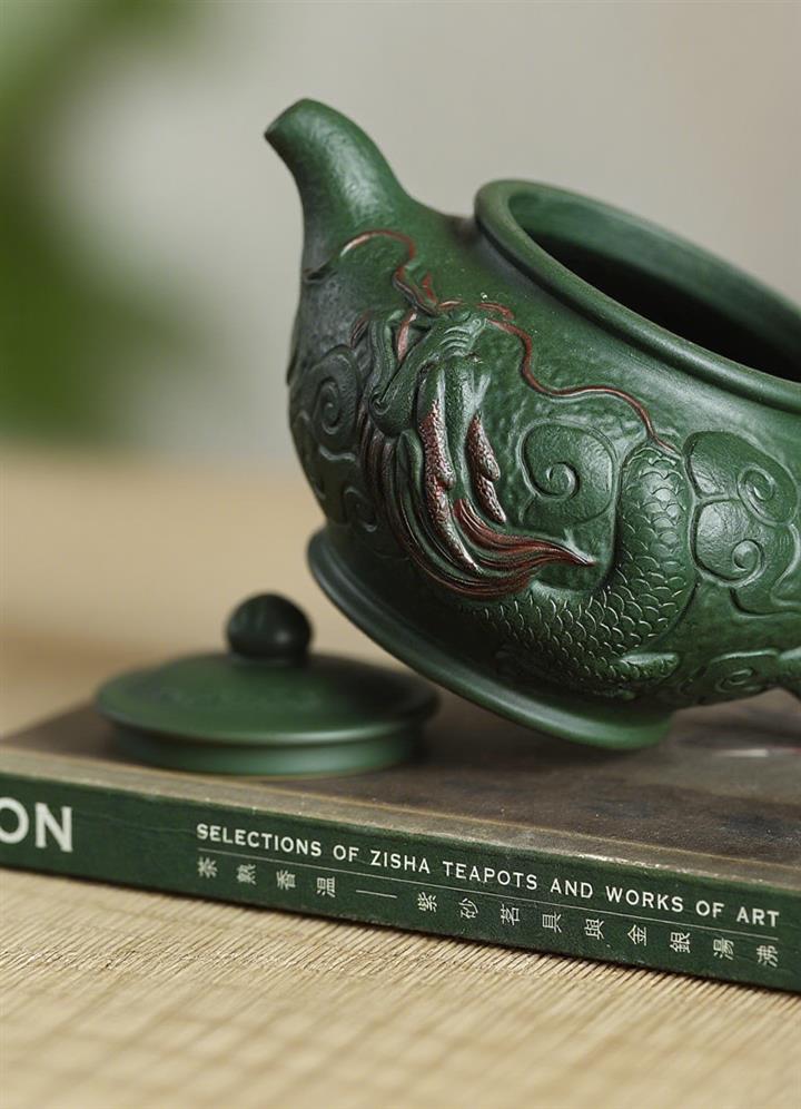 300cc原礦綠老泥瑞龍戲珠掇只茶壺POT7938
