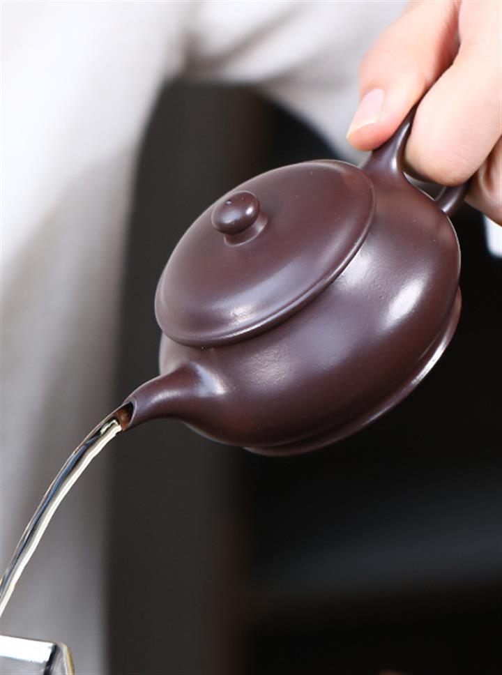 【泥料特點】砂土氣重,似淳實農民,日久使用,漸露鋒芒,養成變化,溫潤莊重。紫砂是壹種雙重氣孔結構的多孔性材質,氣孔微細,密度高。用紫砂壺沏茶,不失原味,且香不渙散,得茶之真香真味。紫砂使用越久,壺身色澤越發光亮照人,氣韻溫雅。紫砂壺長久使用器身會因撫摸擦拭,變得越發溫潤光澤。