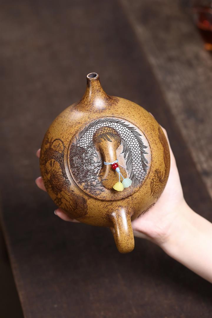 原礦古銅烏泥手工龍紋德鐘茶壺POT6687