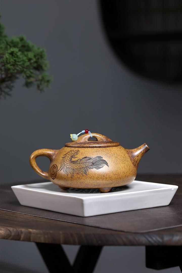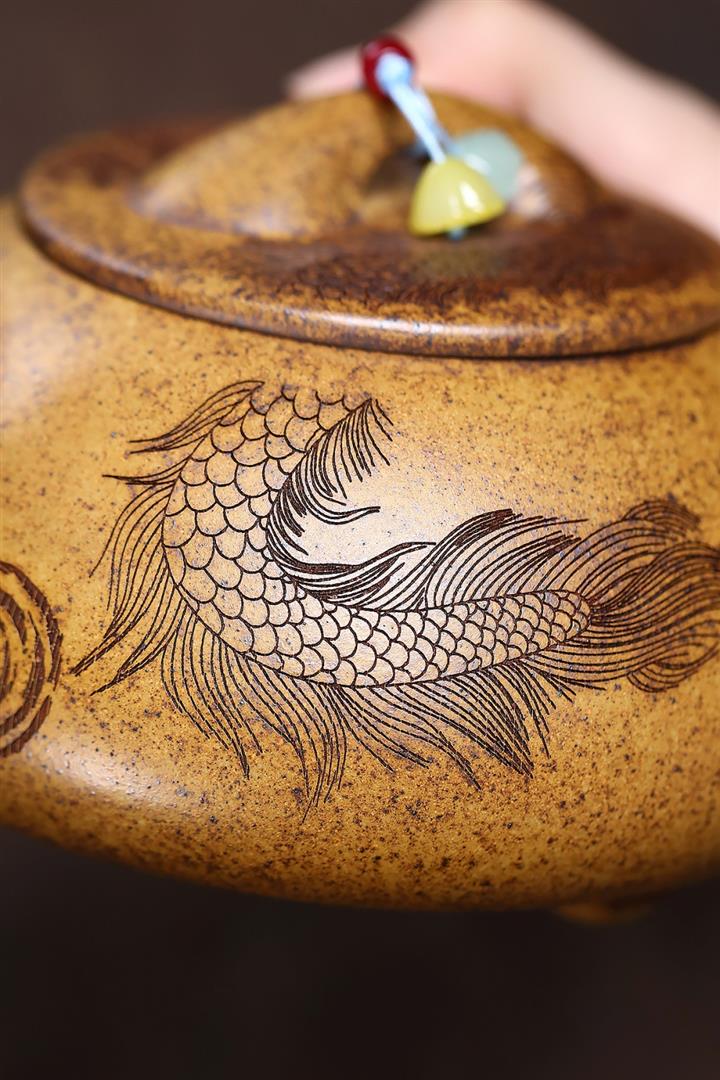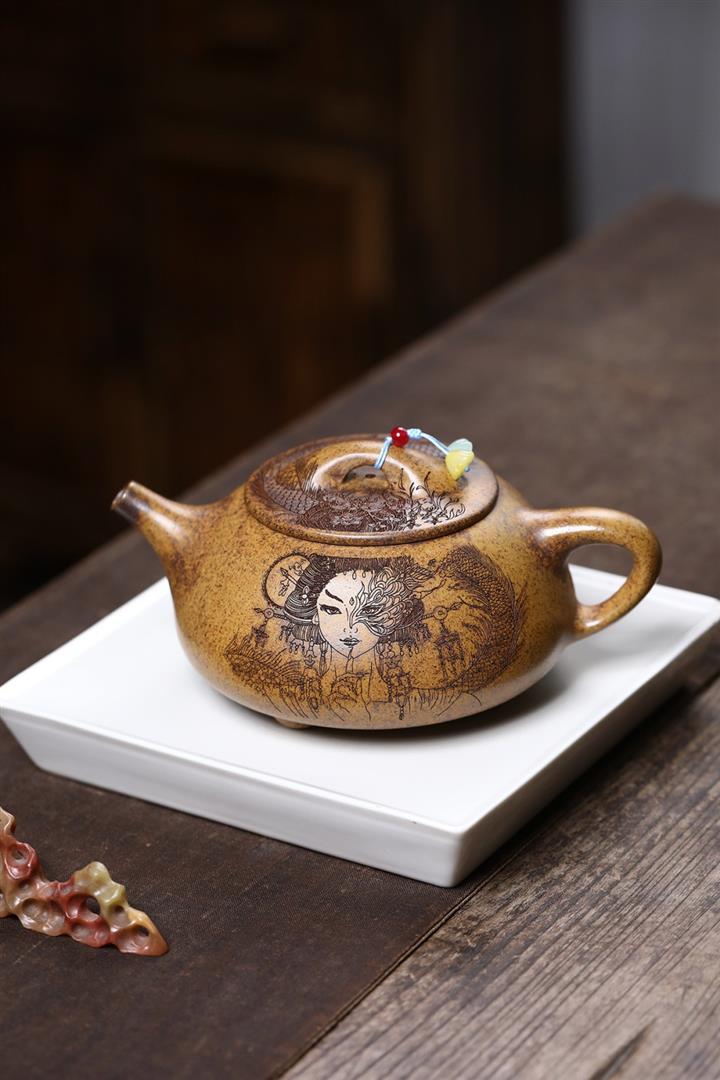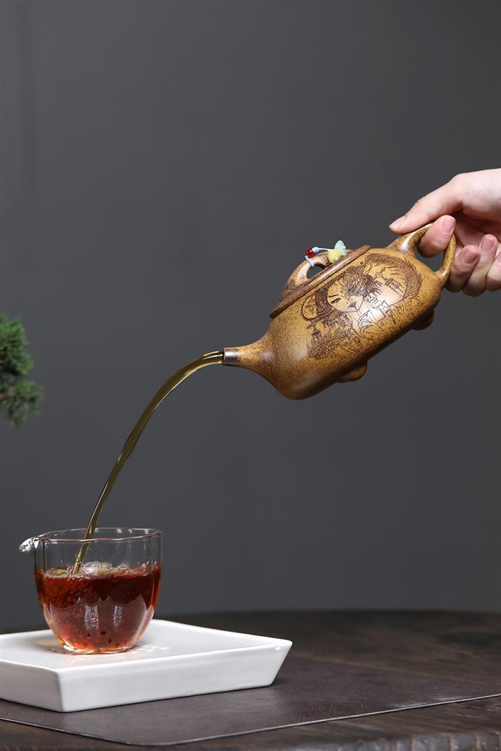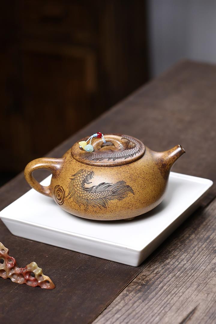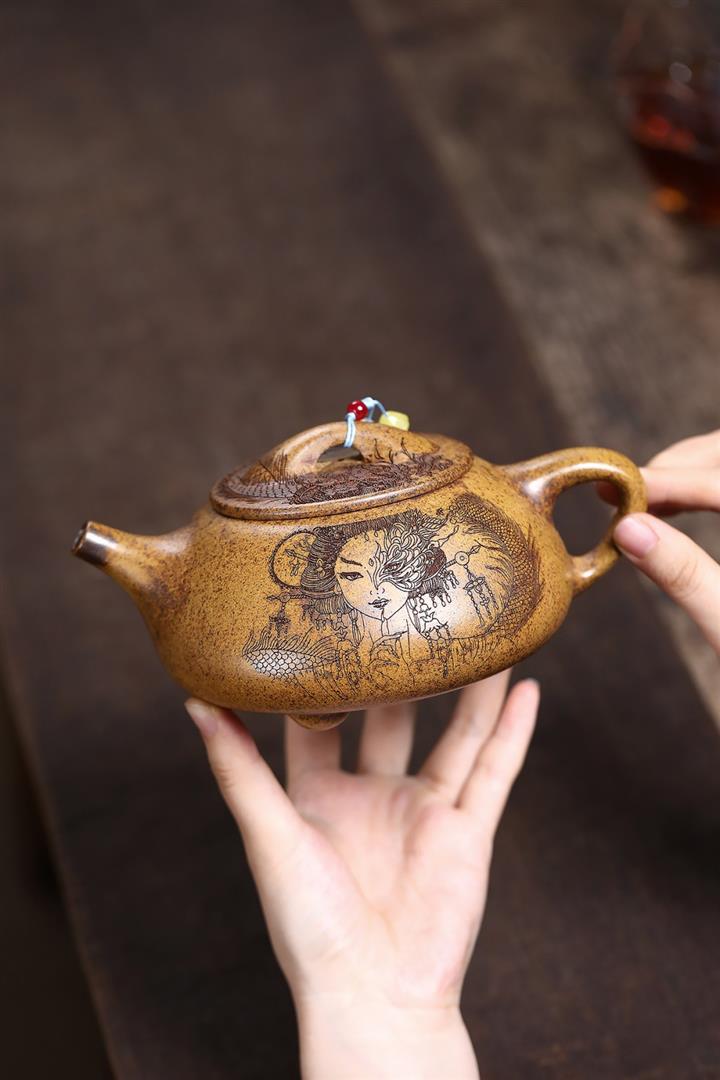 【作品介紹】此款壺形線條流暢,壺把,壺嘴,壺身壹氣呵成栩栩如生,是收藏把玩的好壺,泥料色澤古樸典雅,日久使用,漸露鋒芒,養成變化快,溫潤莊重,用其泡茶,使用的年代久,壺身就溫潤,泡出來的茶湯也就醇郁芳馨。