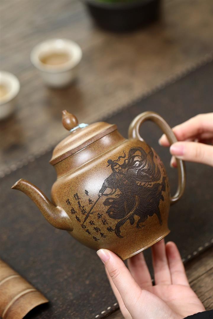 【作品介紹】此款壺形線條流暢,壺把,壺嘴,壺身壹氣呵成栩栩如生,是收藏把玩的好壺,泥料色澤古樸典雅,日久使用,漸露鋒芒,養成變化快,溫潤莊重,用其泡茶,使用的年代久,壺身就溫潤,泡出來的茶湯也就醇郁芳馨。