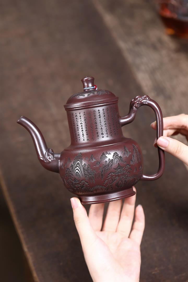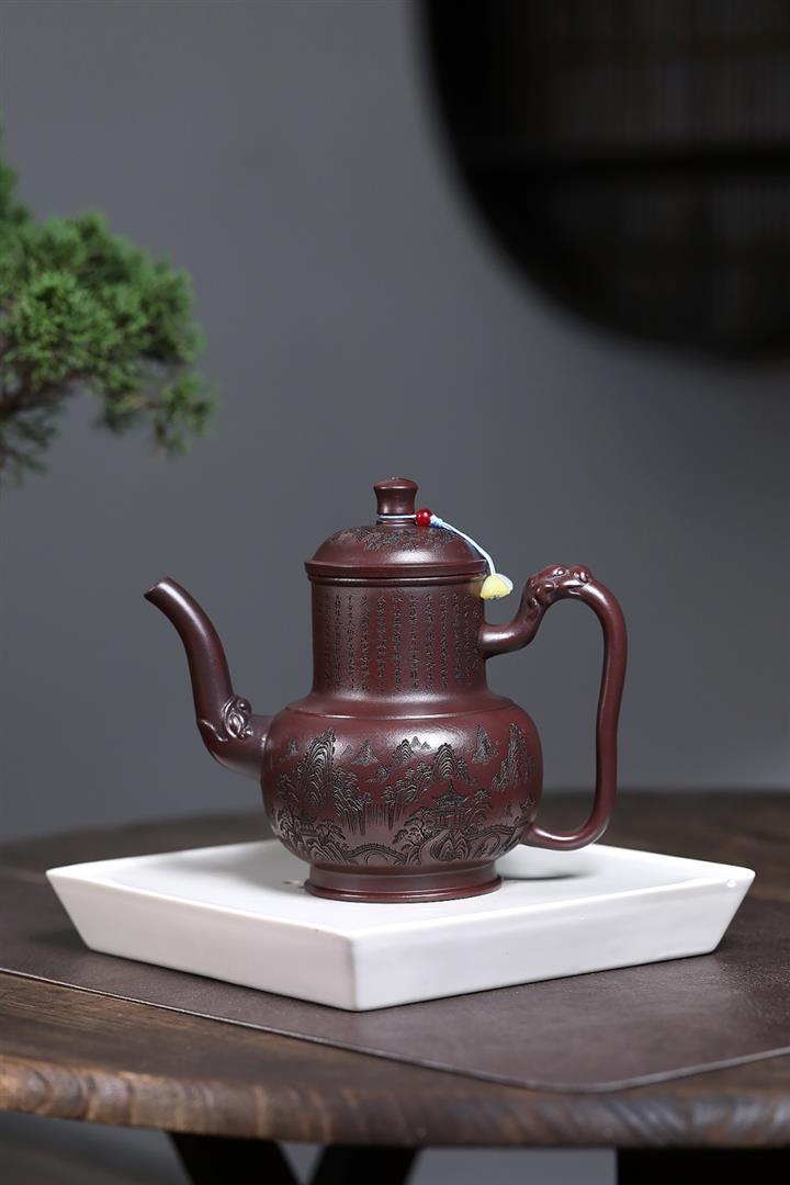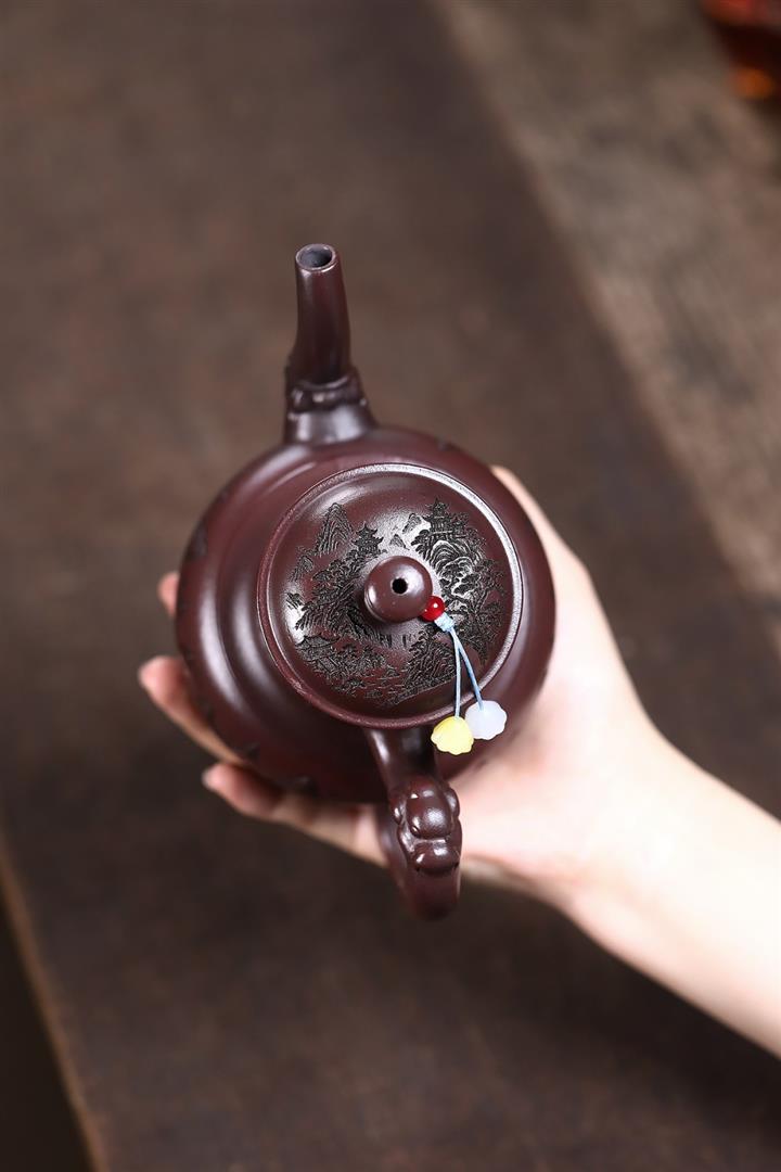 精家藏龍血砂金紋如意紫砂壺POT5737