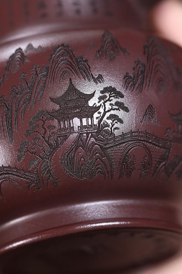 精金黃老段泥太湖竹韻紫砂壺POT5733