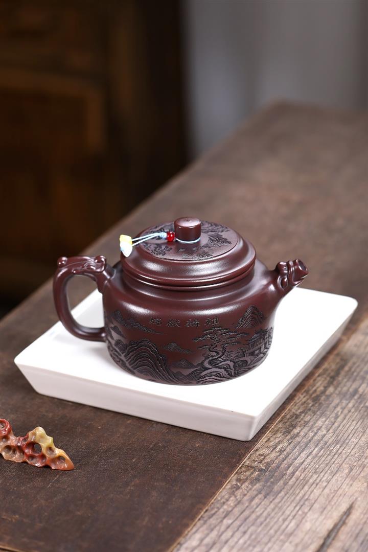【作品介紹】此款壺形線條流暢,壺把,壺嘴,壺身壹氣呵成栩栩如生,是收藏把玩的好壺,泥料色澤古樸典雅,日久使用,漸露鋒芒,養成變化快,溫潤莊重,用其泡茶,使用的年代久,壺身就溫潤,泡出來的茶湯也就醇郁芳馨。