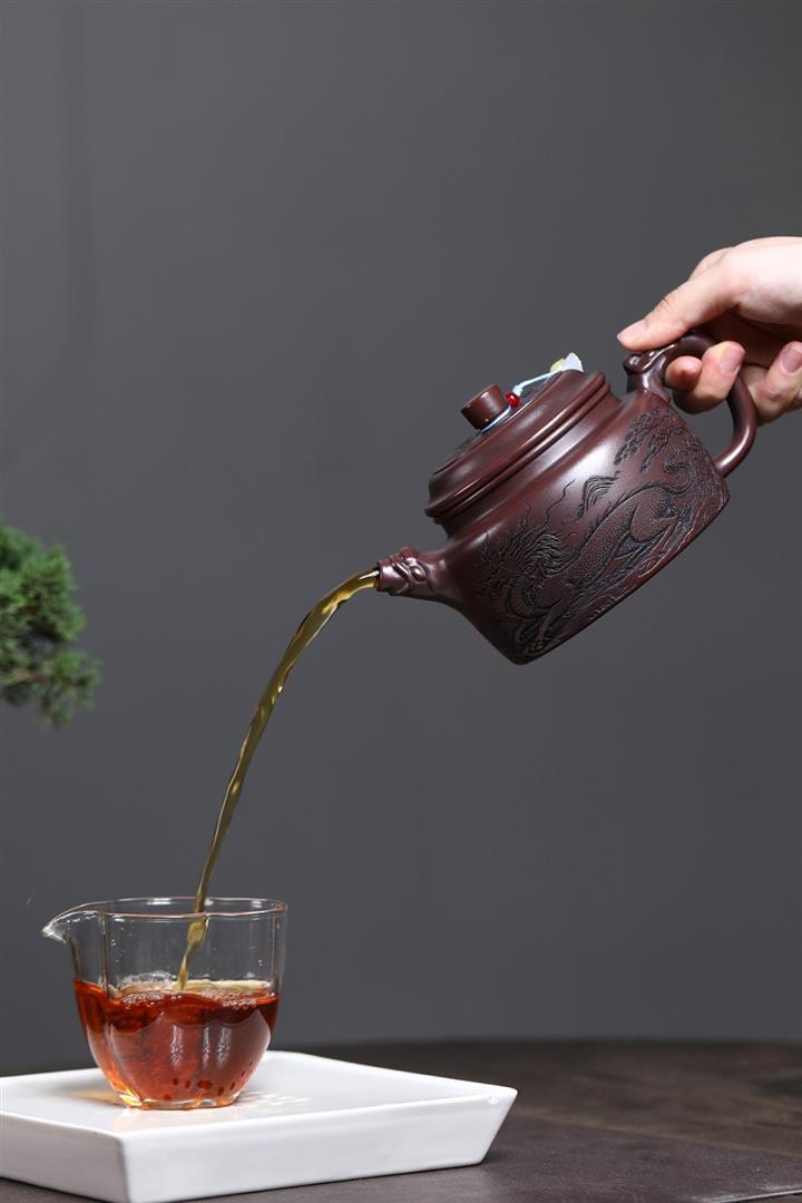 【泥料特點】砂土氣重,似淳實農民,日久使用,漸露鋒芒,養成變化,溫潤莊重。紫砂是壹種雙重氣孔結構的多孔性材質,氣孔微細,密度高。用紫砂壺沏茶,不失原味,且香不渙散,得茶之真香真味。紫砂使用越久,壺身色澤越發光亮照人,氣韻溫雅。紫砂壺長久使用器身會因撫摸擦拭,變得越發溫潤光澤。