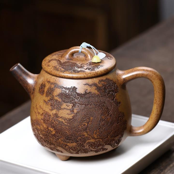 【作品介紹】此款壺形線條流暢,壺把,壺嘴,壺身壹氣呵成栩栩如生,是收藏把玩的好壺,泥料色澤古樸典雅,日久使用,漸露鋒芒,養成變化快,溫潤莊重,用其泡茶,使用的年代久,壺身就溫潤,泡出來的茶湯也就醇郁芳馨。