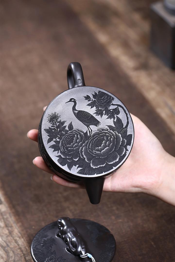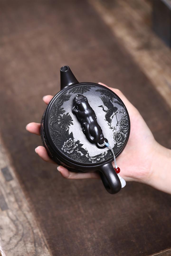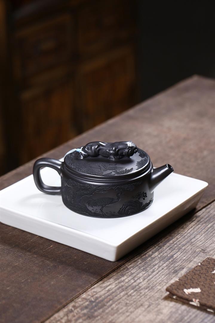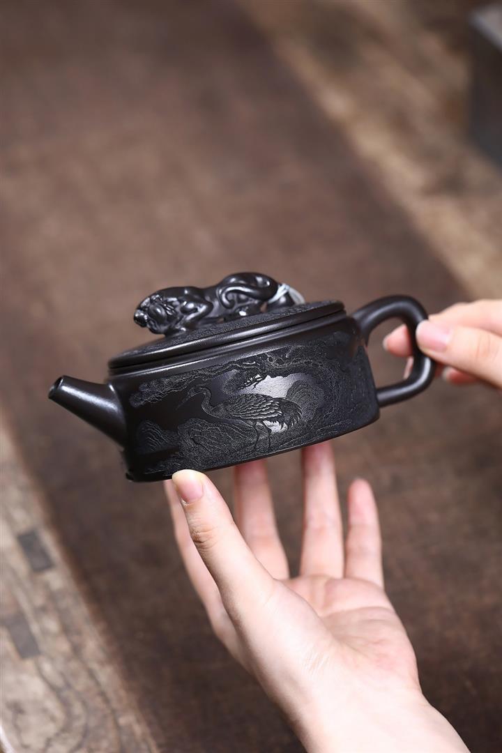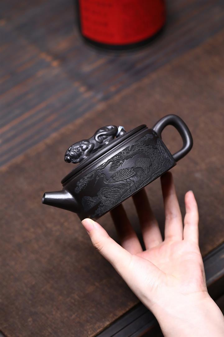 450cc原礦古烏泥滿刻淩雲問樵壺POT8157