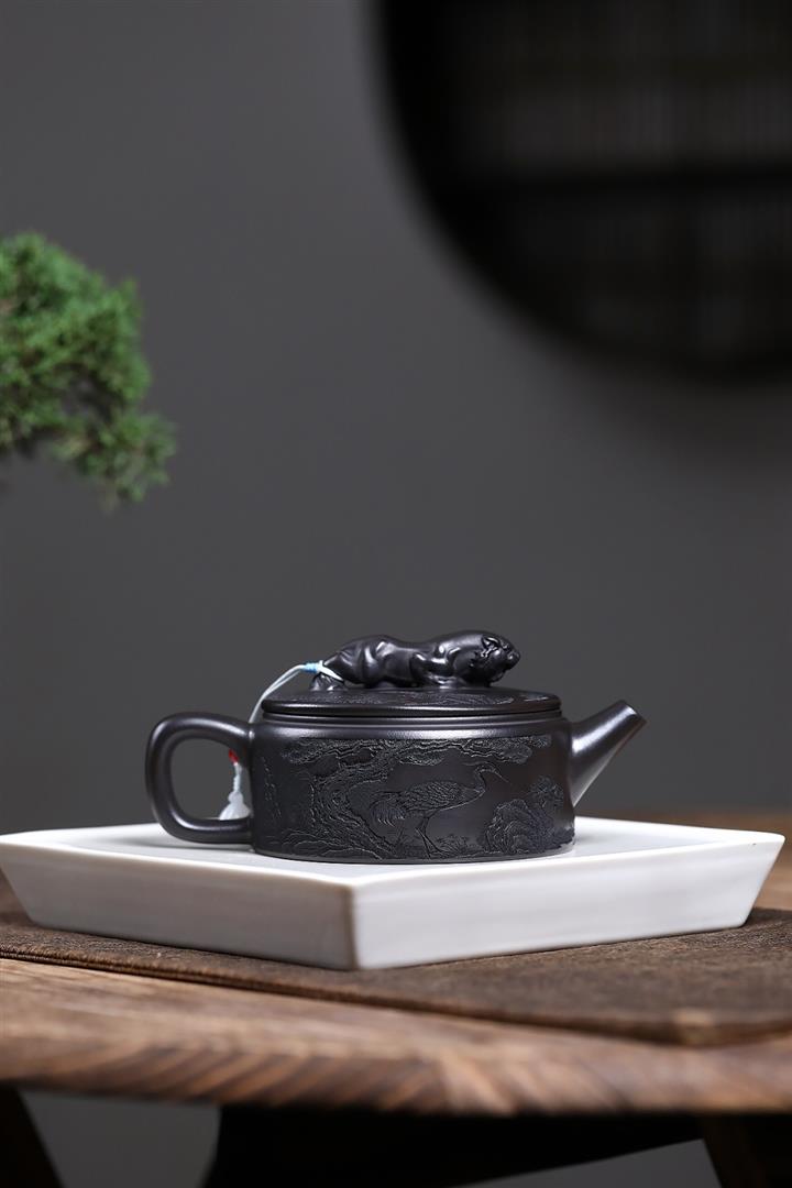 280cc原礦黑料描撒灑金筋紋虛扁茶壺POT8153