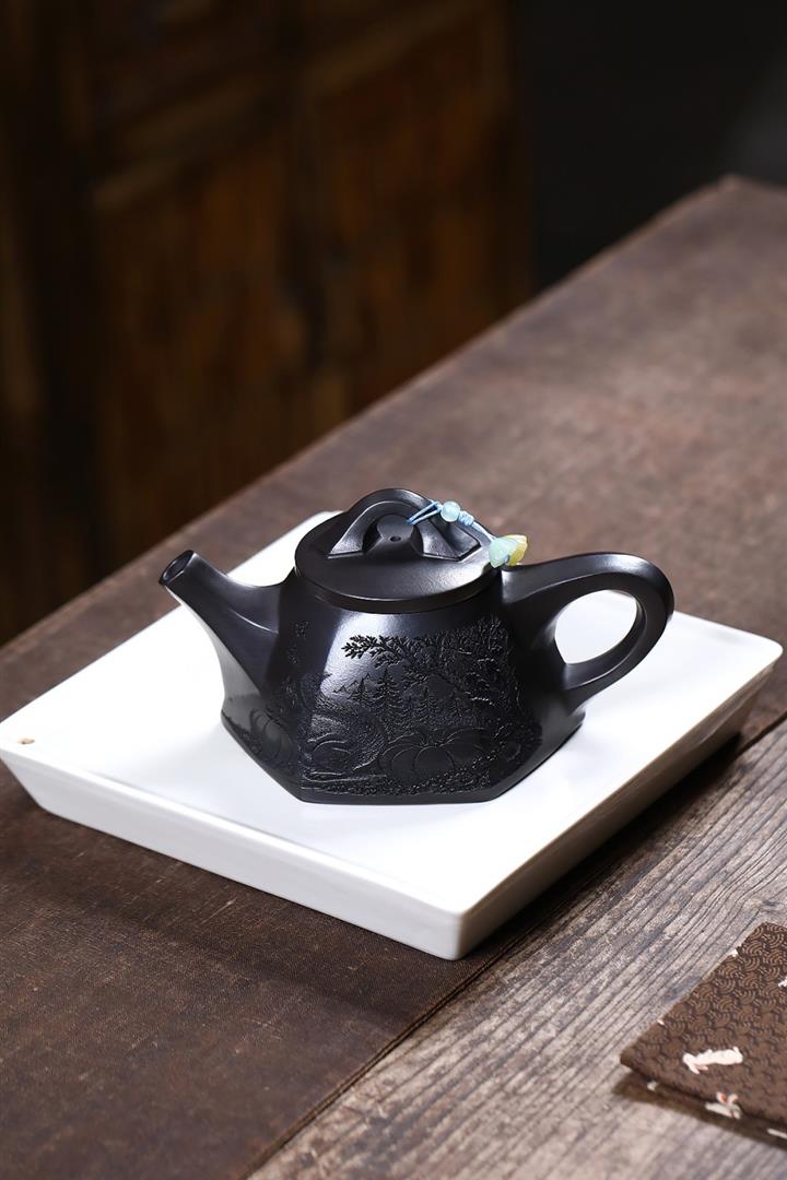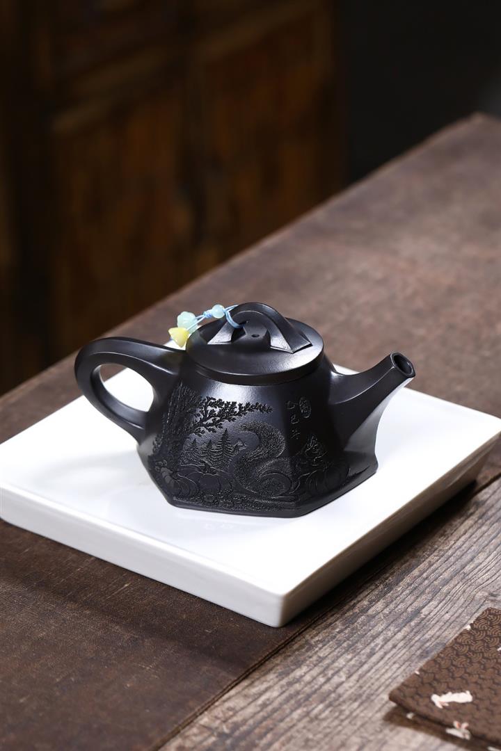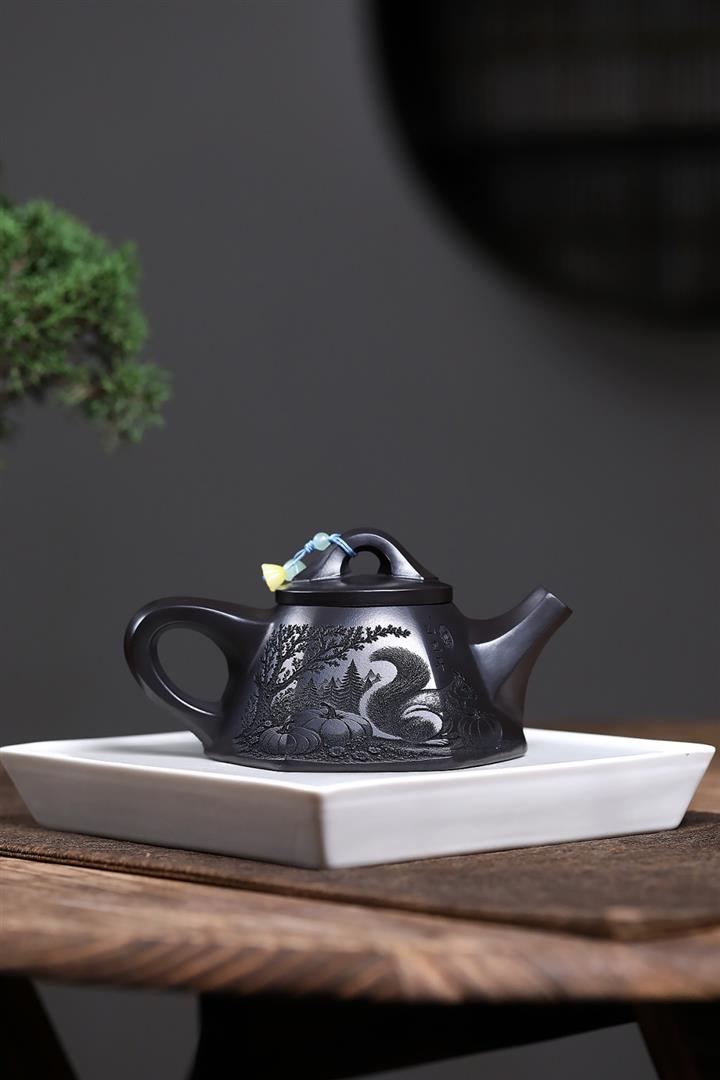 【作品介紹】此款壺形線條流暢,壺把,壺嘴,壺身壹氣呵成栩栩如生,是收藏把玩的好壺,泥料色澤古樸典雅,日久使用,漸露鋒芒,養成變化快,溫潤莊重,用其泡茶,使用的年代久,壺身就溫潤,泡出來的茶湯也就醇郁芳馨。