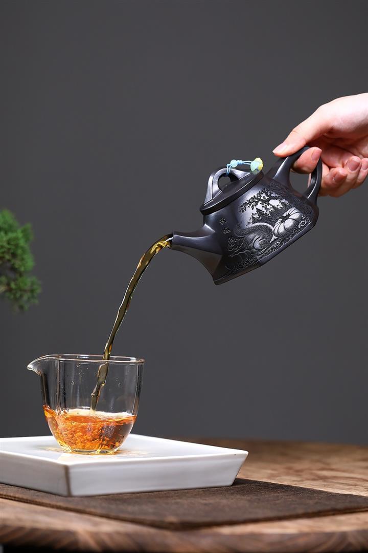 【泥料特點】砂土氣重,似淳實農民,日久使用,漸露鋒芒,養成變化,溫潤莊重。紫砂是壹種雙重氣孔結構的多孔性材質,氣孔微細,密度高。用紫砂壺沏茶,不失原味,且香不渙散,得茶之真香真味。紫砂使用越久,壺身色澤越發光亮照人,氣韻溫雅。紫砂壺長久使用器身會因撫摸擦拭,變得越發溫潤光澤。