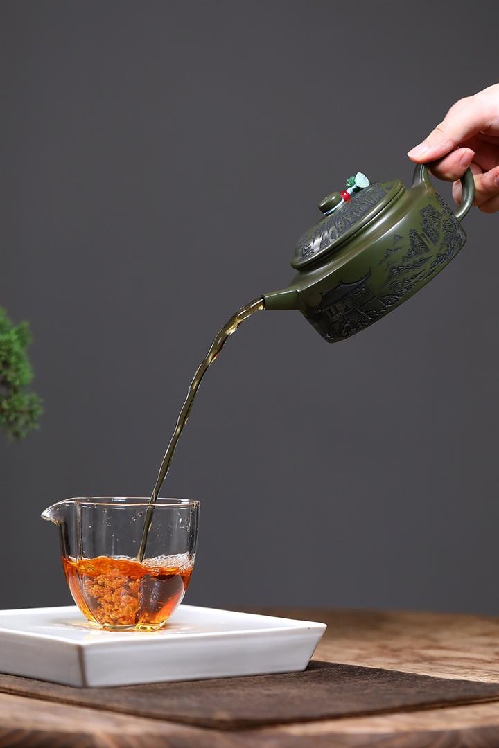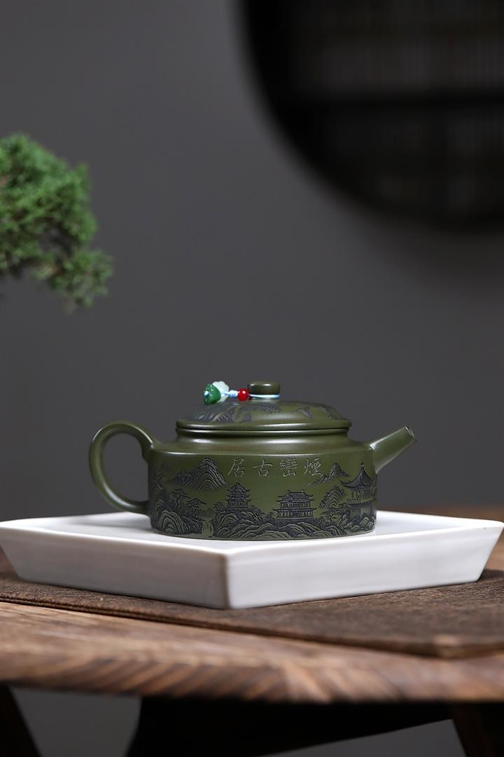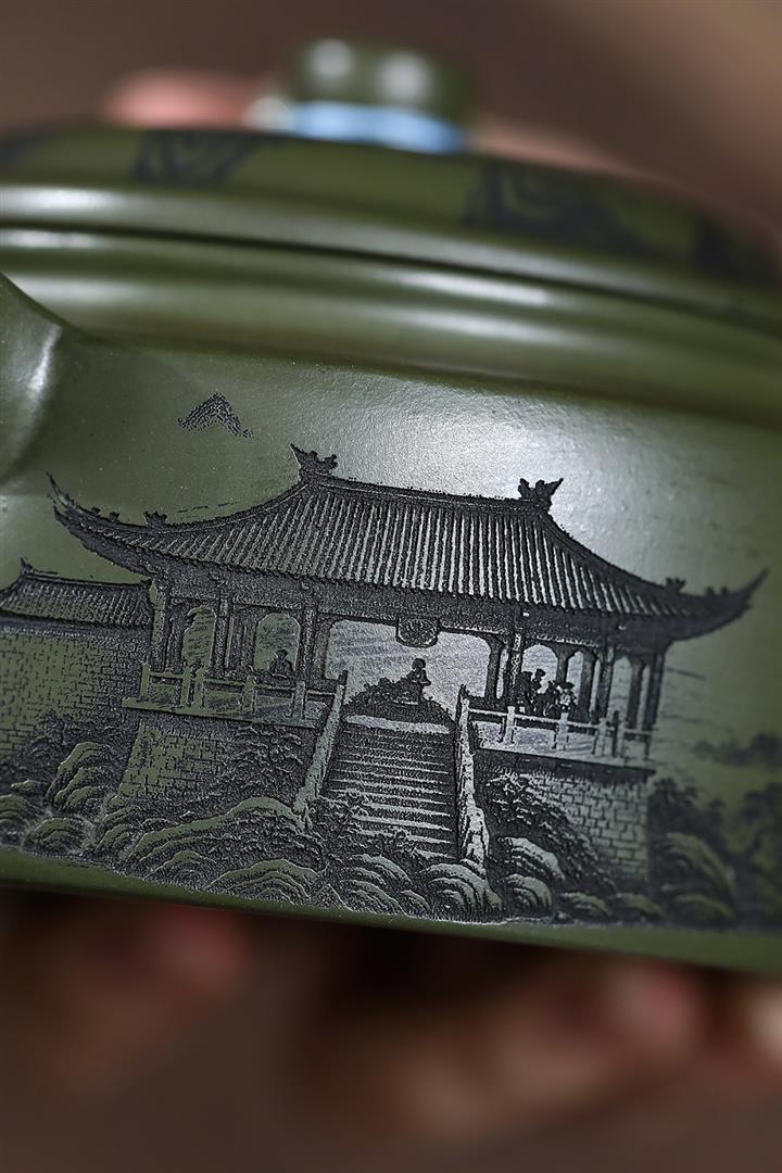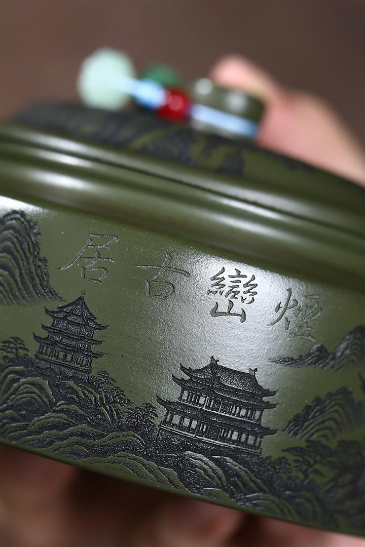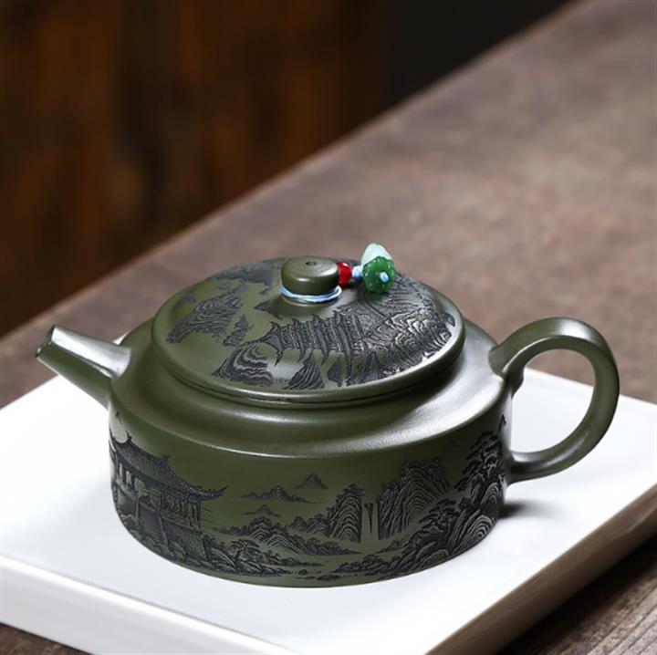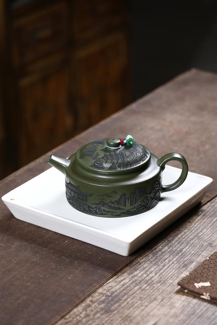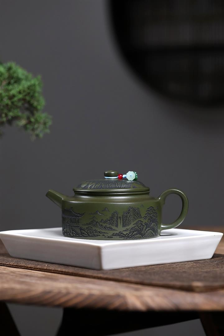 400cc原礦綠泥滿刻江山如畫壺POT7982