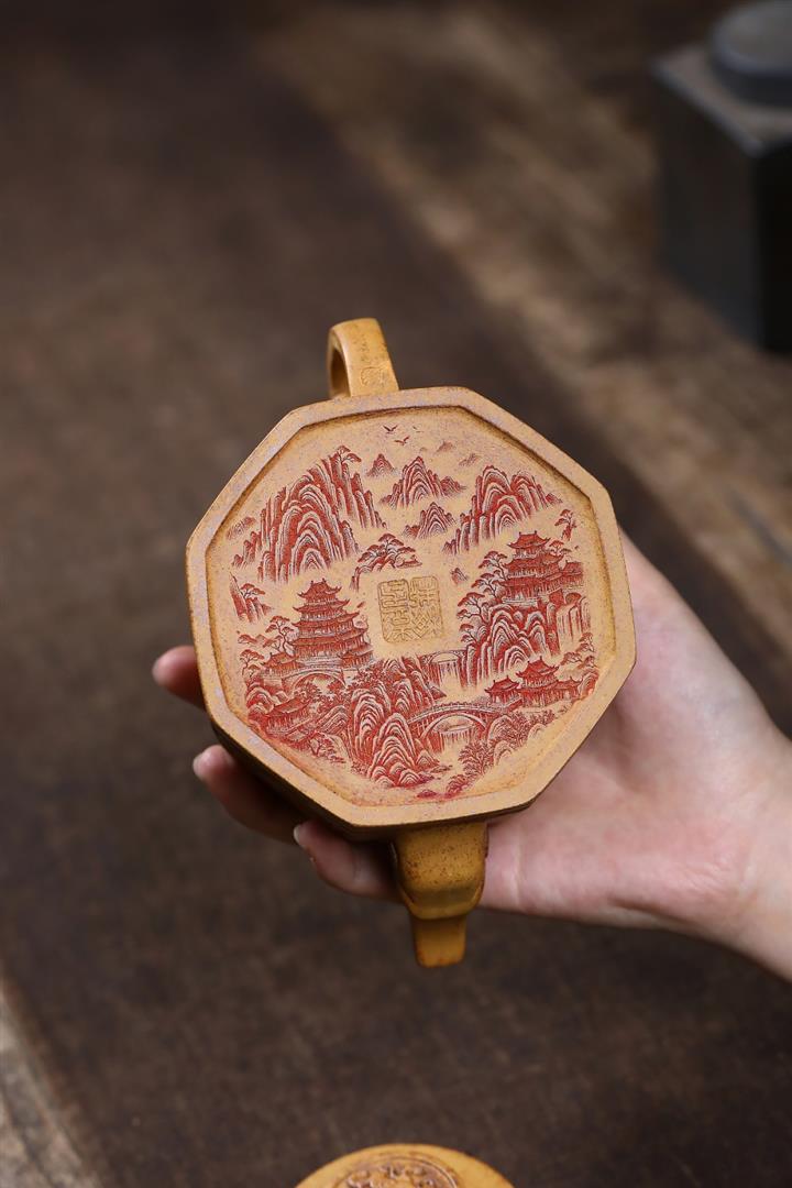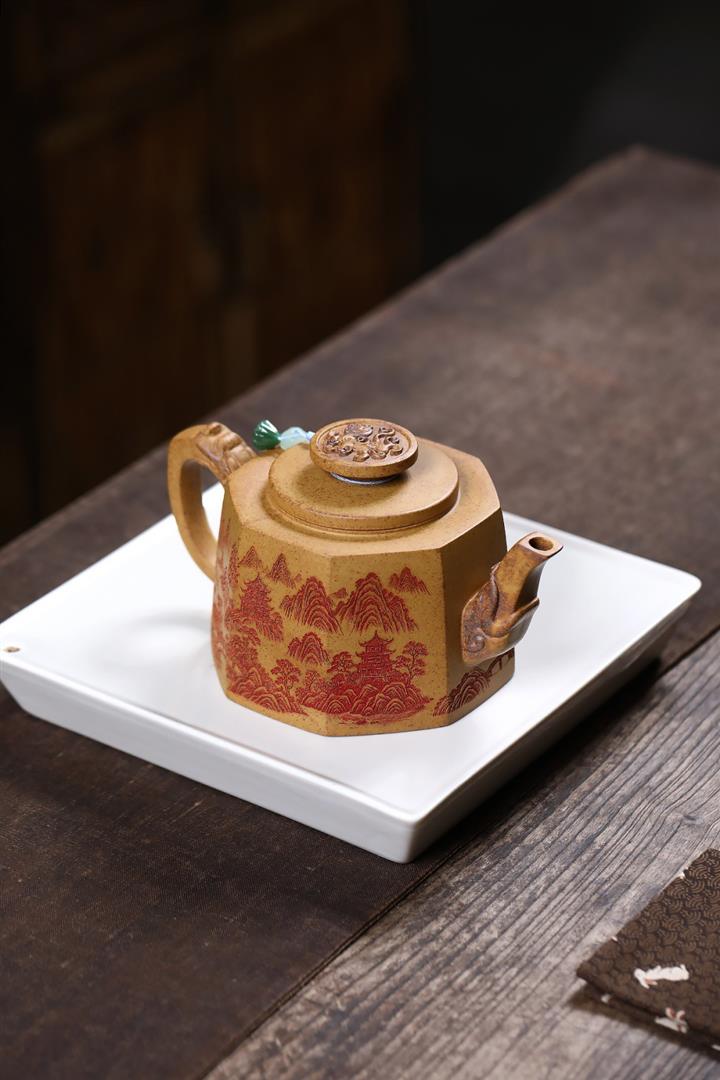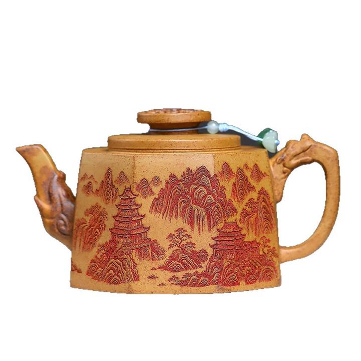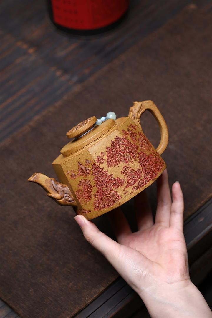 原礦墨綠泥手工刻畫山水仿古茶壺POT6930