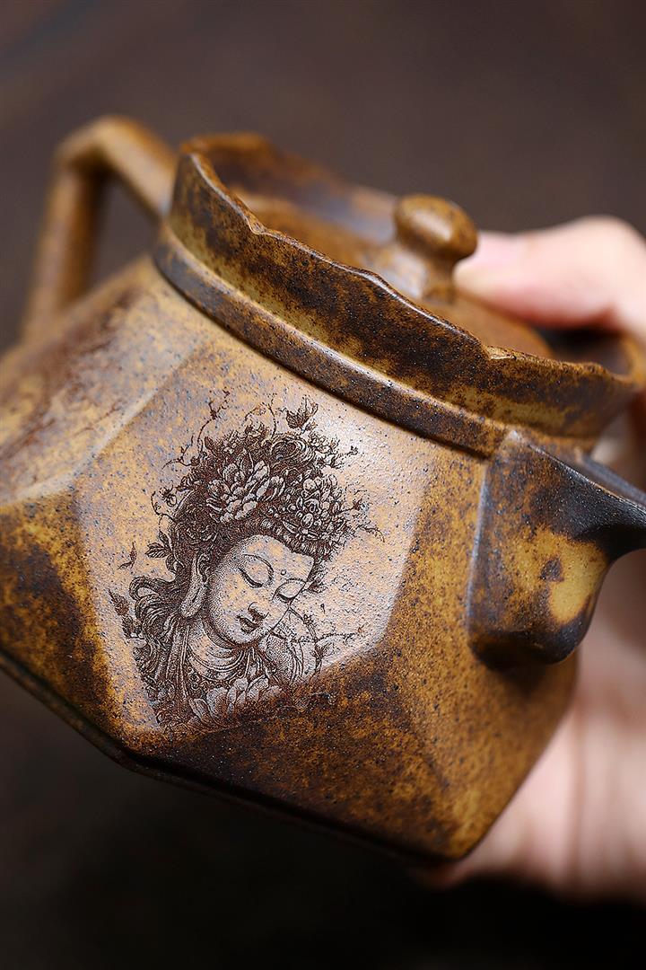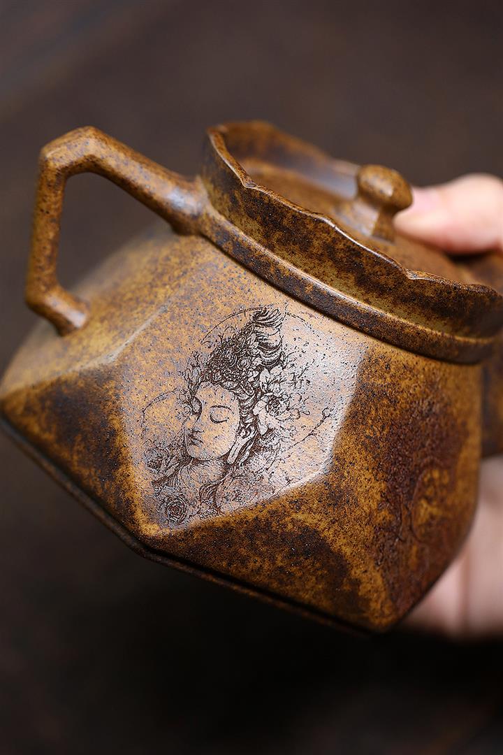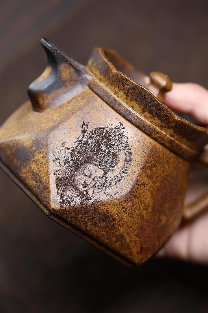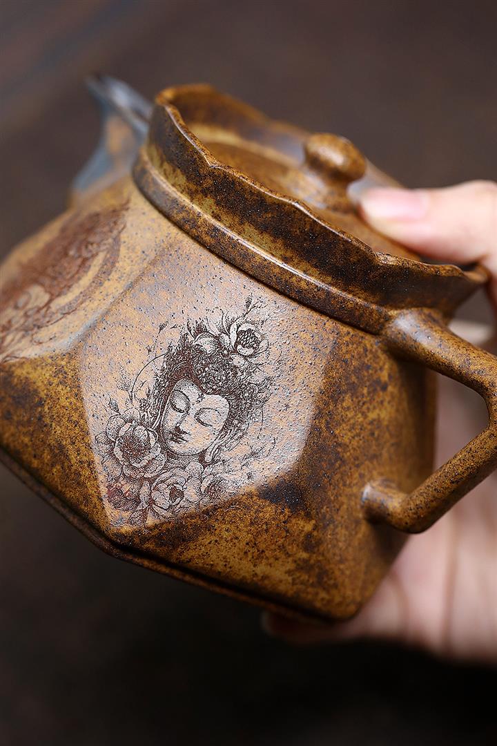原礦古烏泥滿刻花鳥西施茶壺POT7817