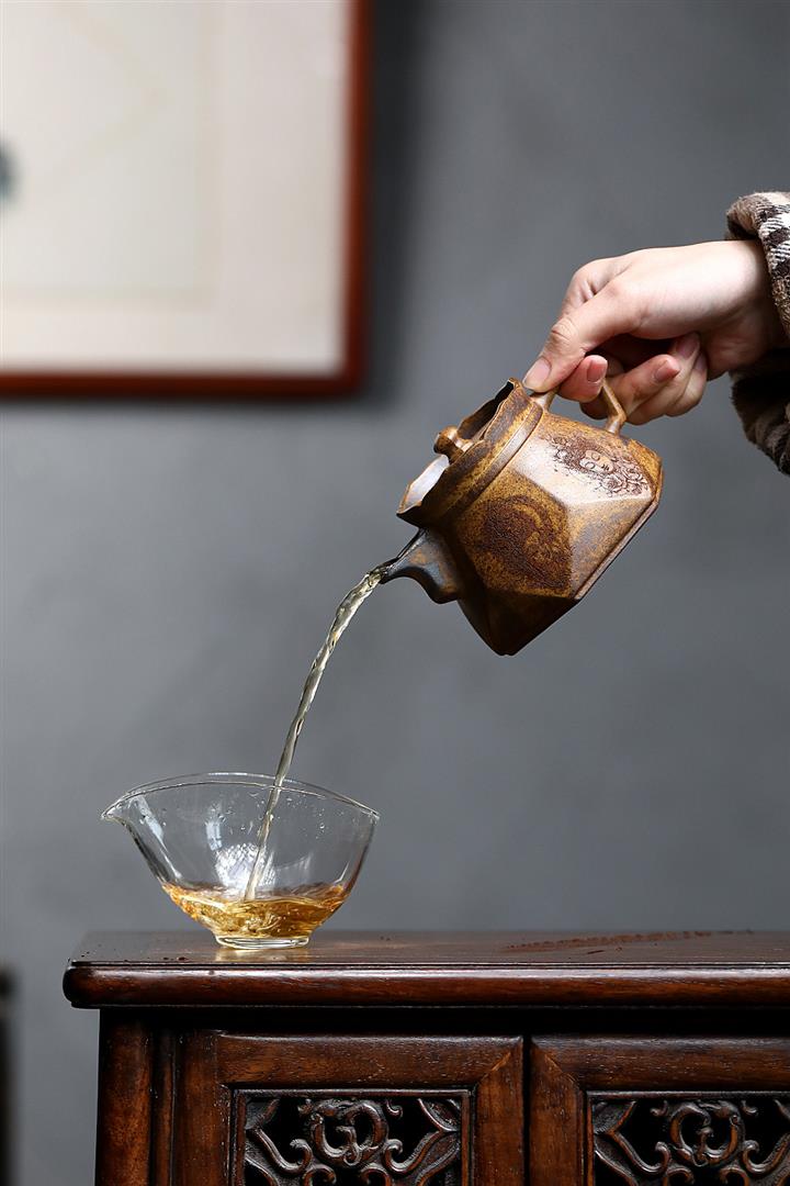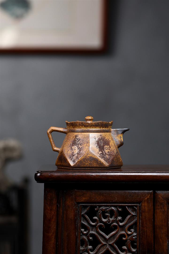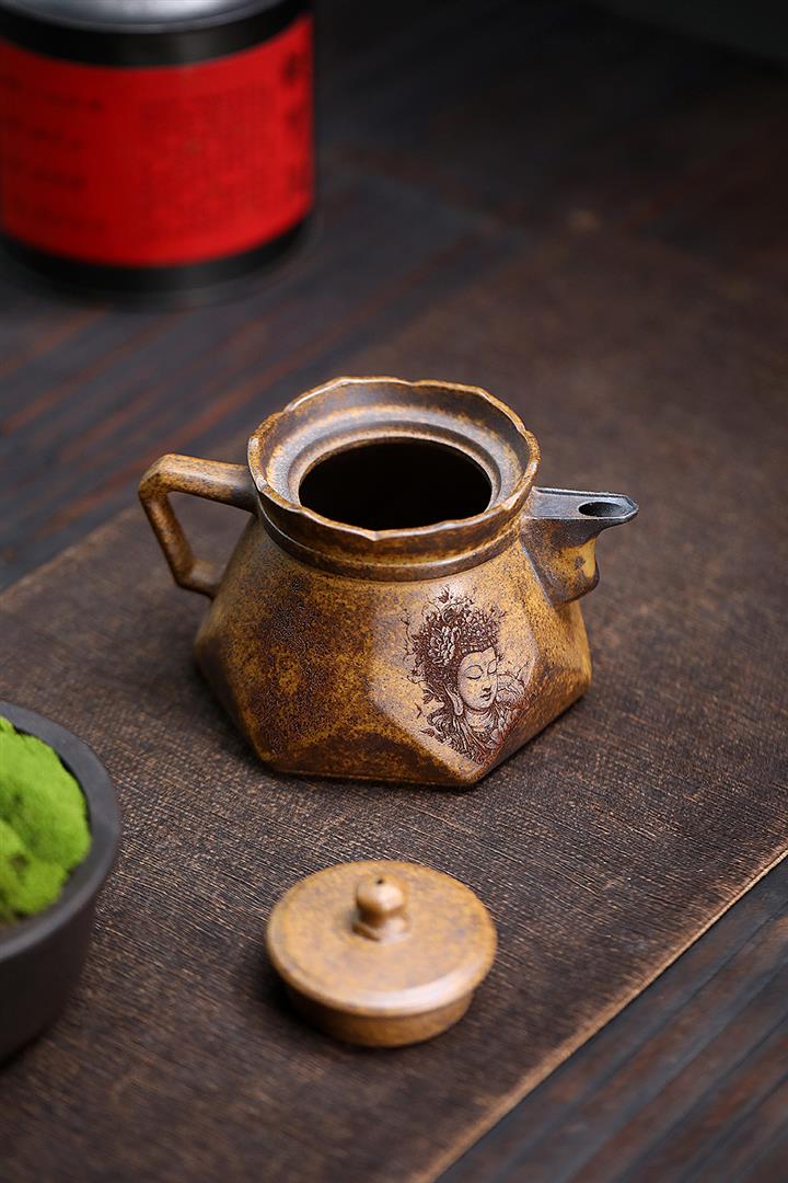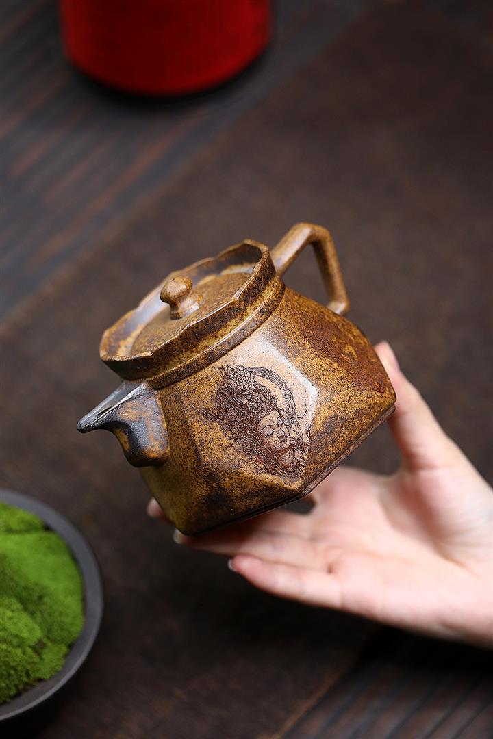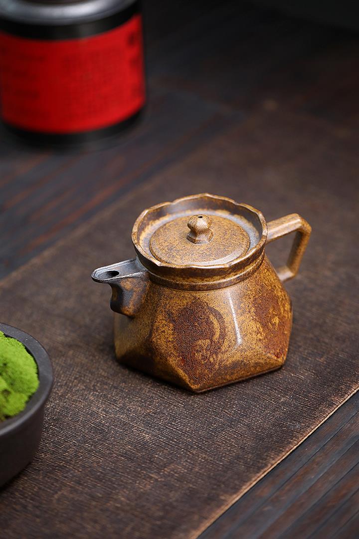 原礦段泥高溫柴燒六方金鐘茶壺POT7823