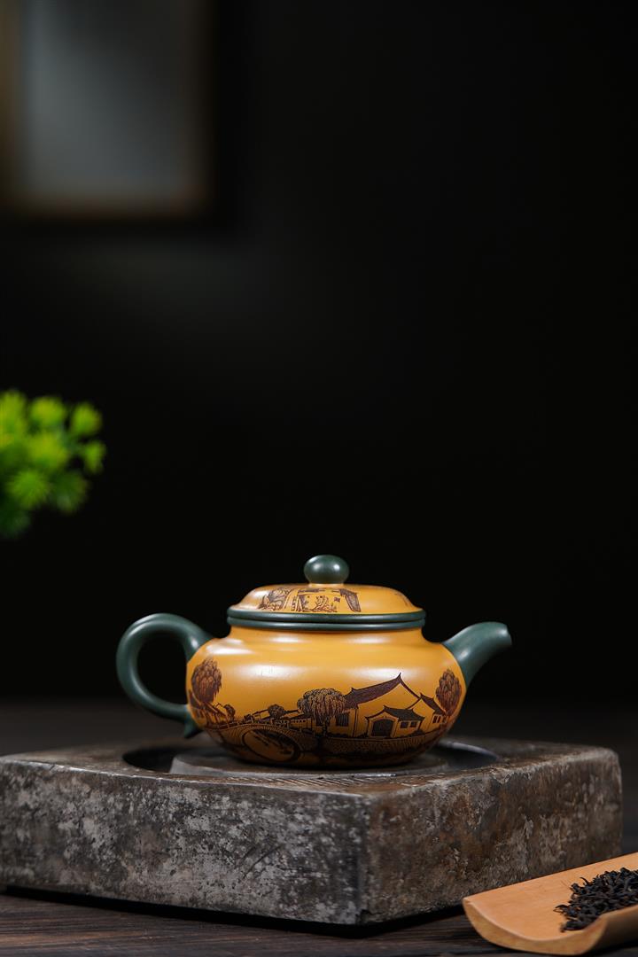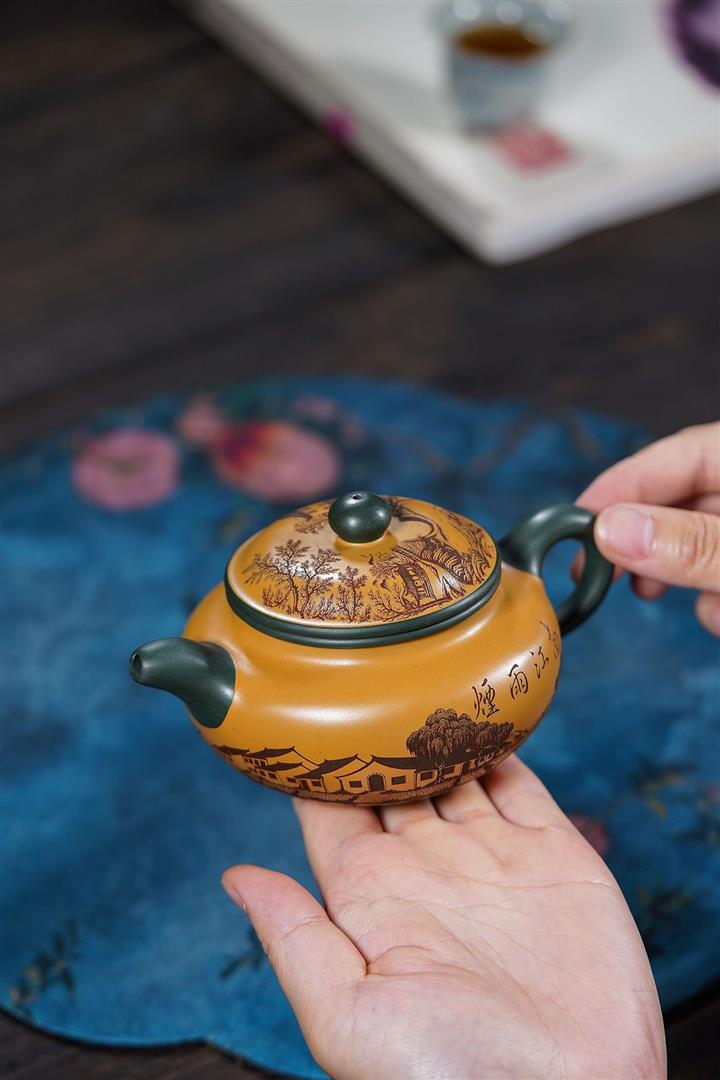 【作品介紹】此款壺形線條流暢,壺把,壺嘴,壺身壹氣呵成栩栩如生,是收藏把玩的好壺,泥料色澤古樸典雅,日久使用,漸露鋒芒,養成變化快,溫潤莊重,用其泡茶,使用的年代久,壺身就溫潤,泡出來的茶湯也就醇郁芳馨。