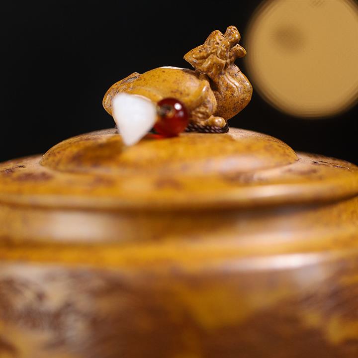 本綠玉砂段鼠來寶石瓢紫砂壺POT4883