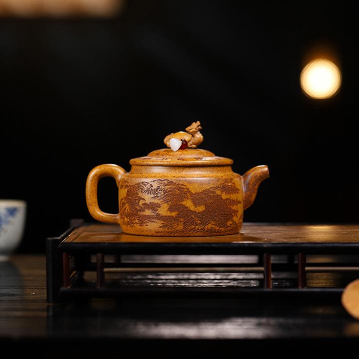 【作品介紹】此款壺形線條流暢,壺把,壺嘴,壺身壹氣呵成栩栩如生,是收藏把玩的好壺,泥料色澤古樸典雅,日久使用,漸露鋒芒,養成變化快,溫潤莊重,用其泡茶,使用的年代久,壺身就溫潤,泡出來的茶湯也就醇郁芳馨。
