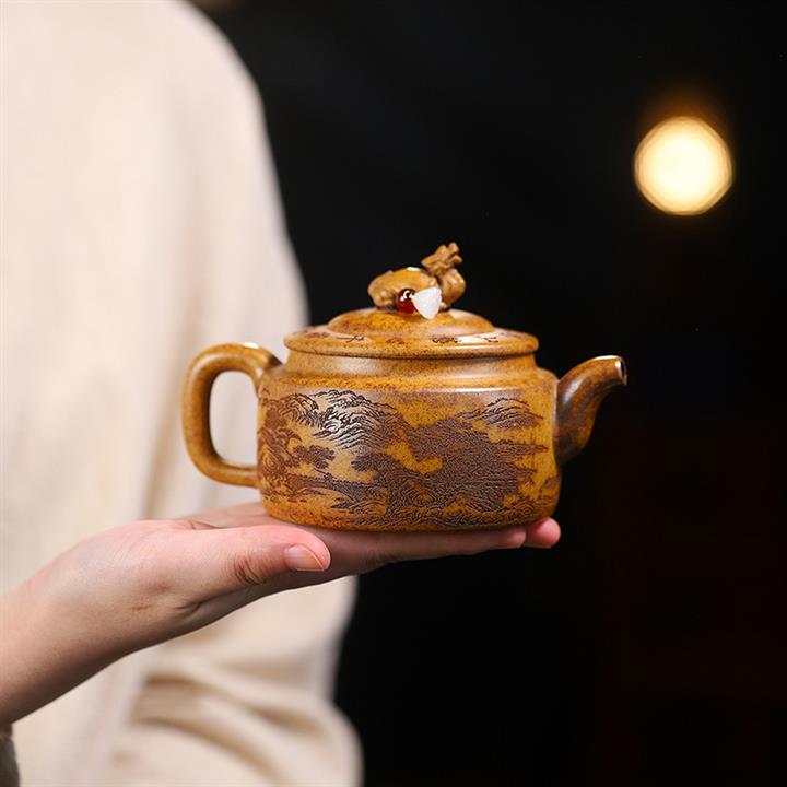 高溫段泥貼花石瓢壺紫砂壺POT4885