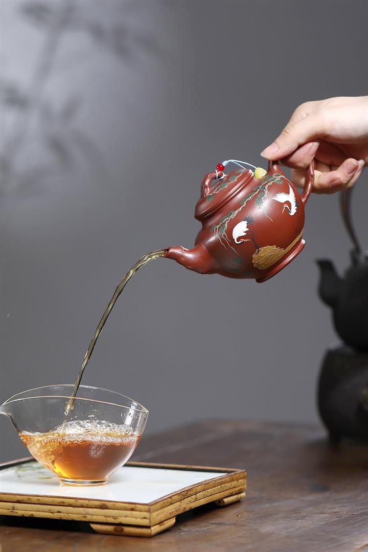 【泥料特點】砂土氣重,似淳實農民,日久使用,漸露鋒芒,養成變化,溫潤莊重。紫砂是壹種雙重氣孔結構的多孔性材質,氣孔微細,密度高。用紫砂壺沏茶,不失原味,且香不渙散,得茶之真香真味。紫砂使用越久,壺身色澤越發光亮照人,氣韻溫雅。紫砂壺長久使用器身會因撫摸擦拭,變得越發溫潤光澤。