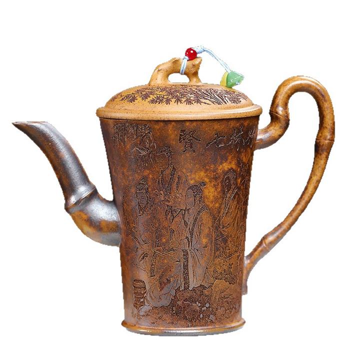 340cc原礦龍骨金砂竹林七賢竹筒茶壺POT8063