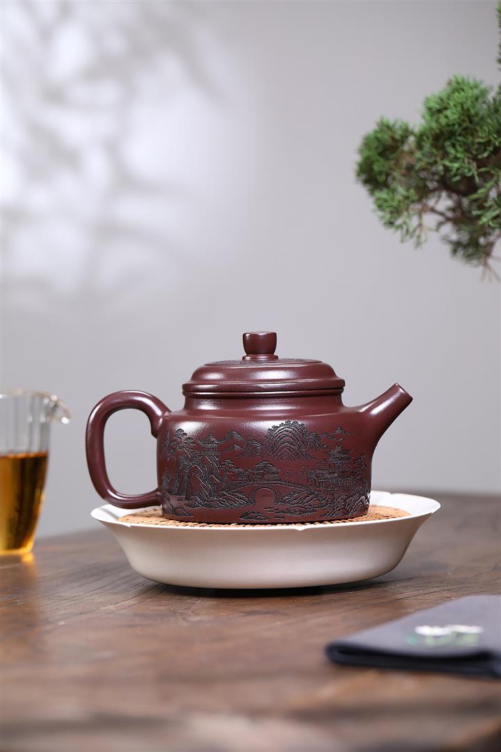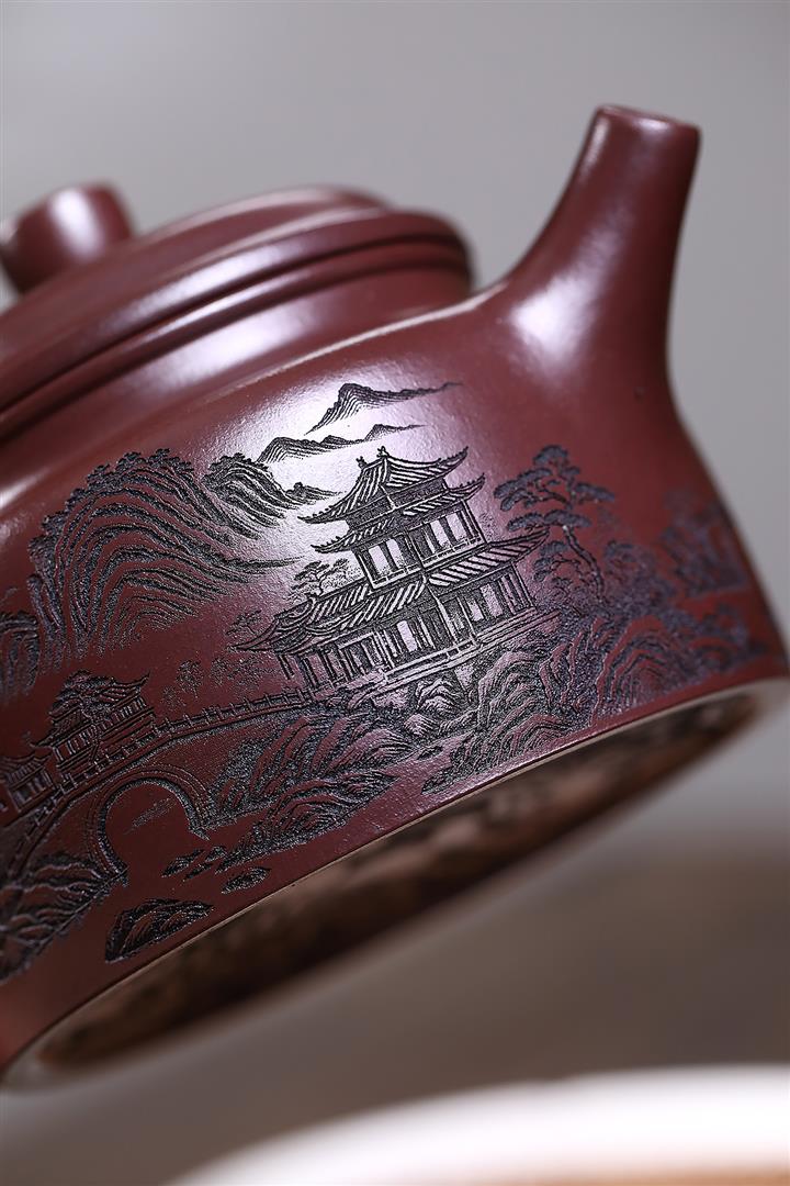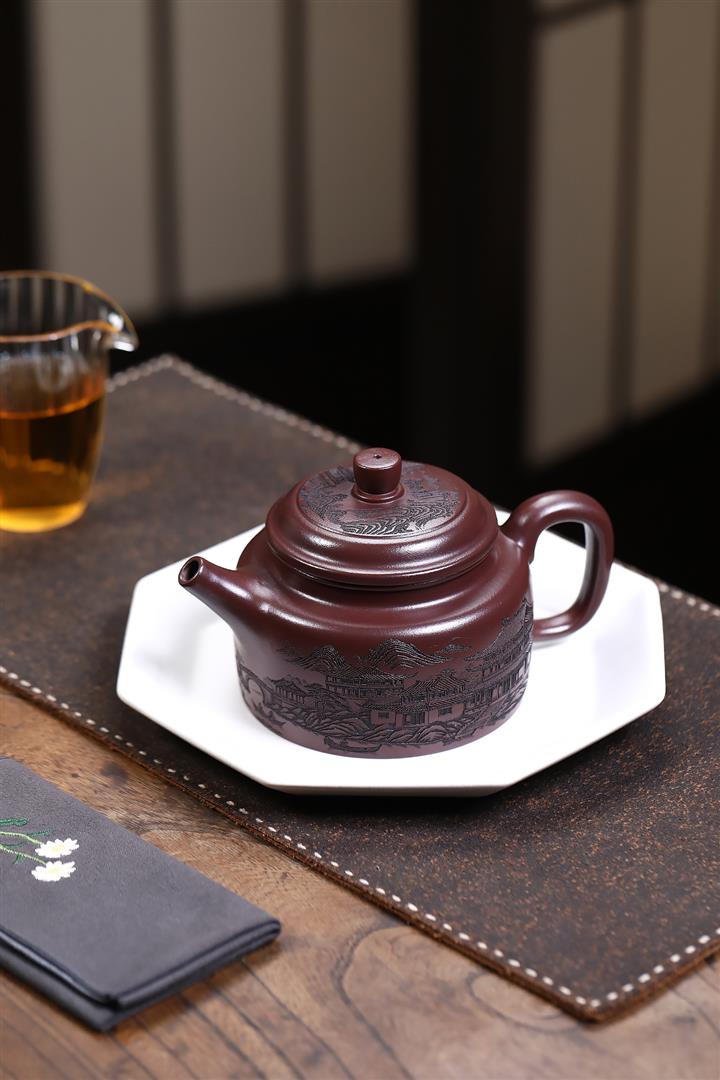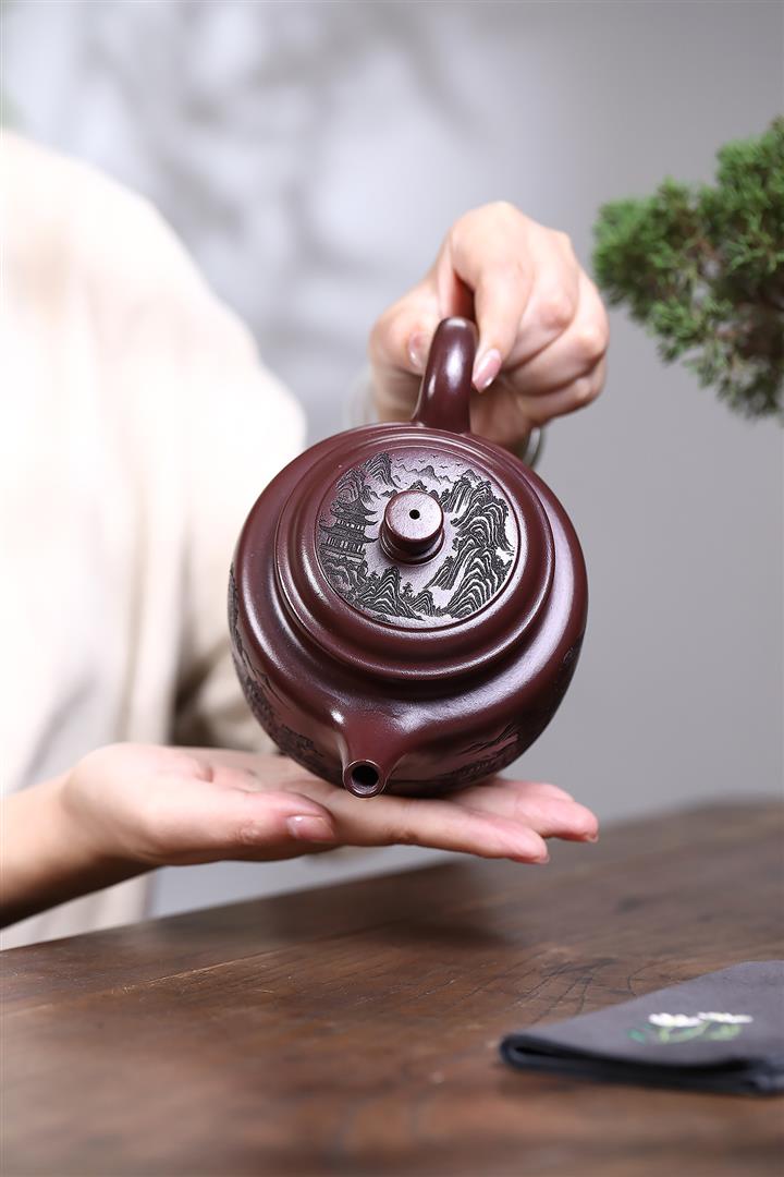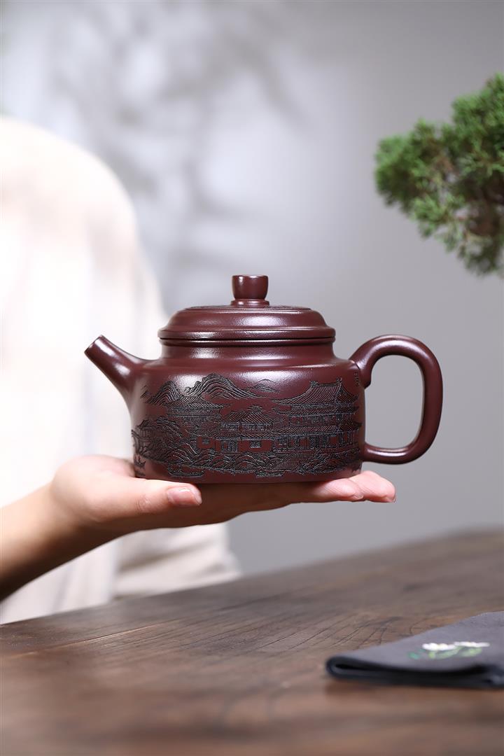 【作品介紹】此款壺形線條流暢,壺把,壺嘴,壺身壹氣呵成栩栩如生,是收藏把玩的好壺,泥料色澤古樸典雅,日久使用,漸露鋒芒,養成變化快,溫潤莊重,用其泡茶,使用的年代久,壺身就溫潤,泡出來的茶湯也就醇郁芳馨。