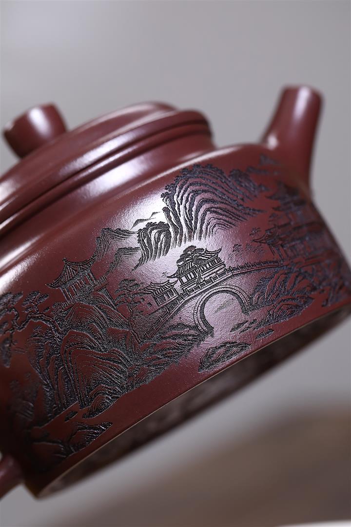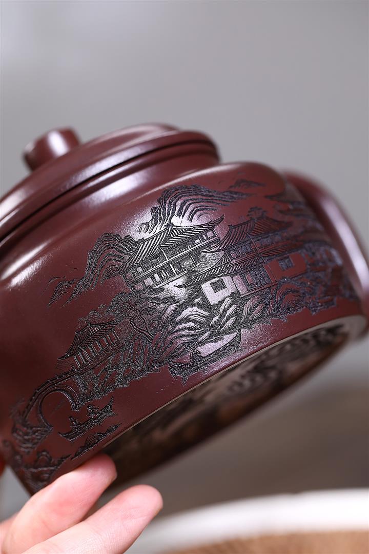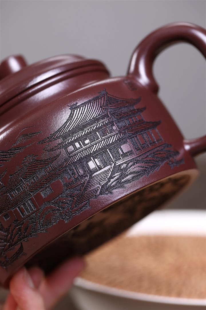 原礦紫朱泥寒梅扁腹仿古紫砂壺POT4780
