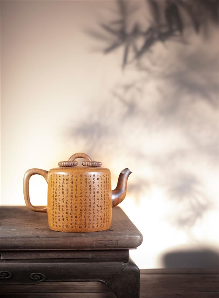 【泥料特點】砂土氣重,似淳實農民,日久使用,漸露鋒芒,養成變化,溫潤莊重。紫砂是壹種雙重氣孔結構的多孔性材質,氣孔微細,密度高。用紫砂壺沏茶,不失原味,且香不渙散,得茶之真香真味。紫砂使用越久,壺身色澤越發光亮照人,氣韻溫雅。紫砂壺長久使用器身會因撫摸擦拭,變得越發溫潤光澤。