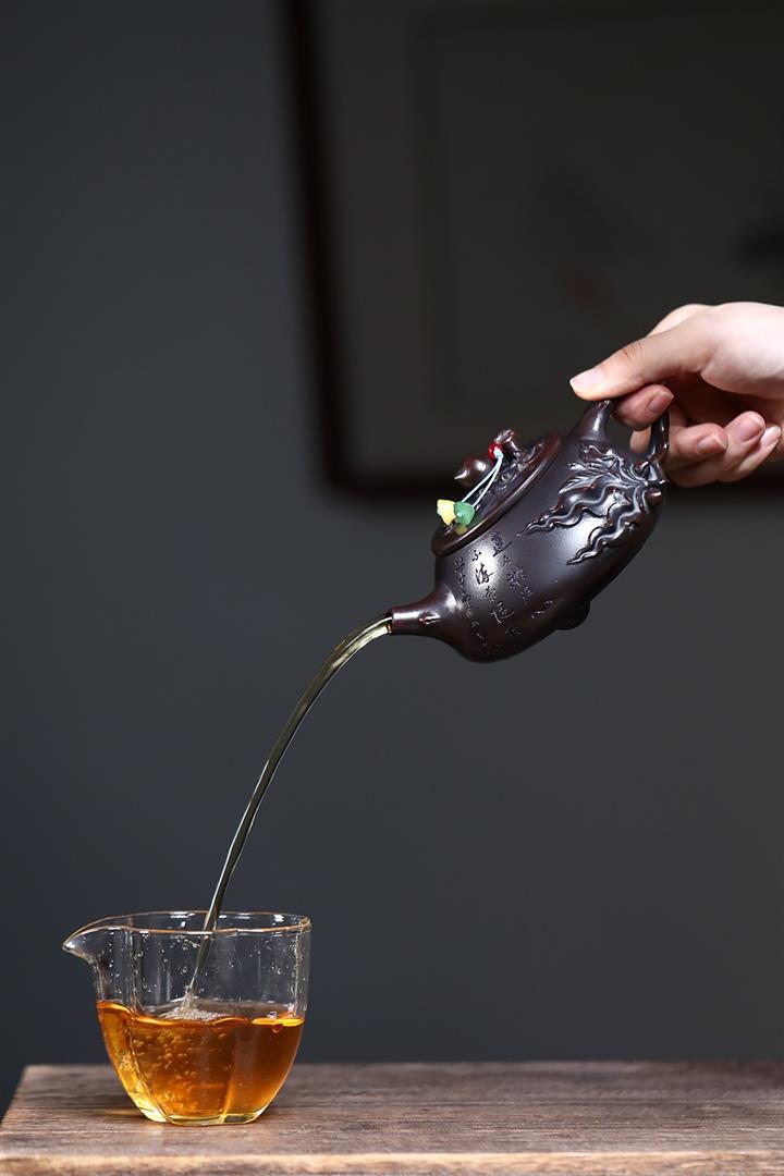 【泥料特點】砂土氣重,似淳實農民,日久使用,漸露鋒芒,養成變化,溫潤莊重。紫砂是壹種雙重氣孔結構的多孔性材質,氣孔微細,密度高。用紫砂壺沏茶,不失原味,且香不渙散,得茶之真香真味。紫砂使用越久,壺身色澤越發光亮照人,氣韻溫雅。紫砂壺長久使用器身會因撫摸擦拭,變得越發溫潤光澤。