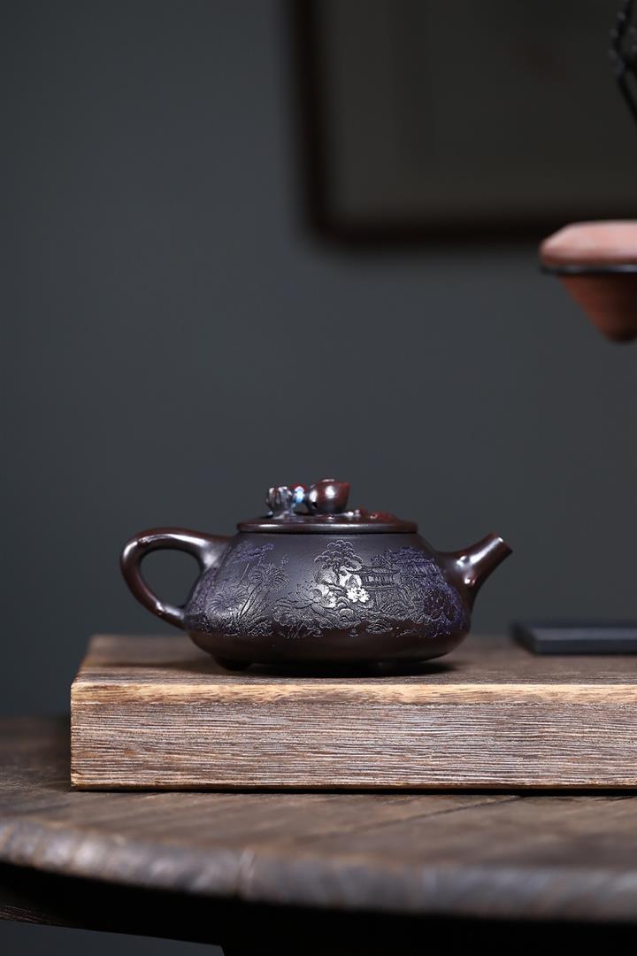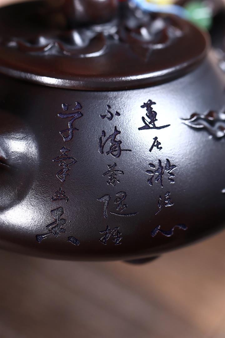 原礦紫朱泥手工描金漁翁茶壺POT6764