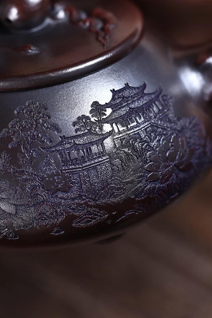 原礦冷黃金純手工刻繪周盤壺POT6758