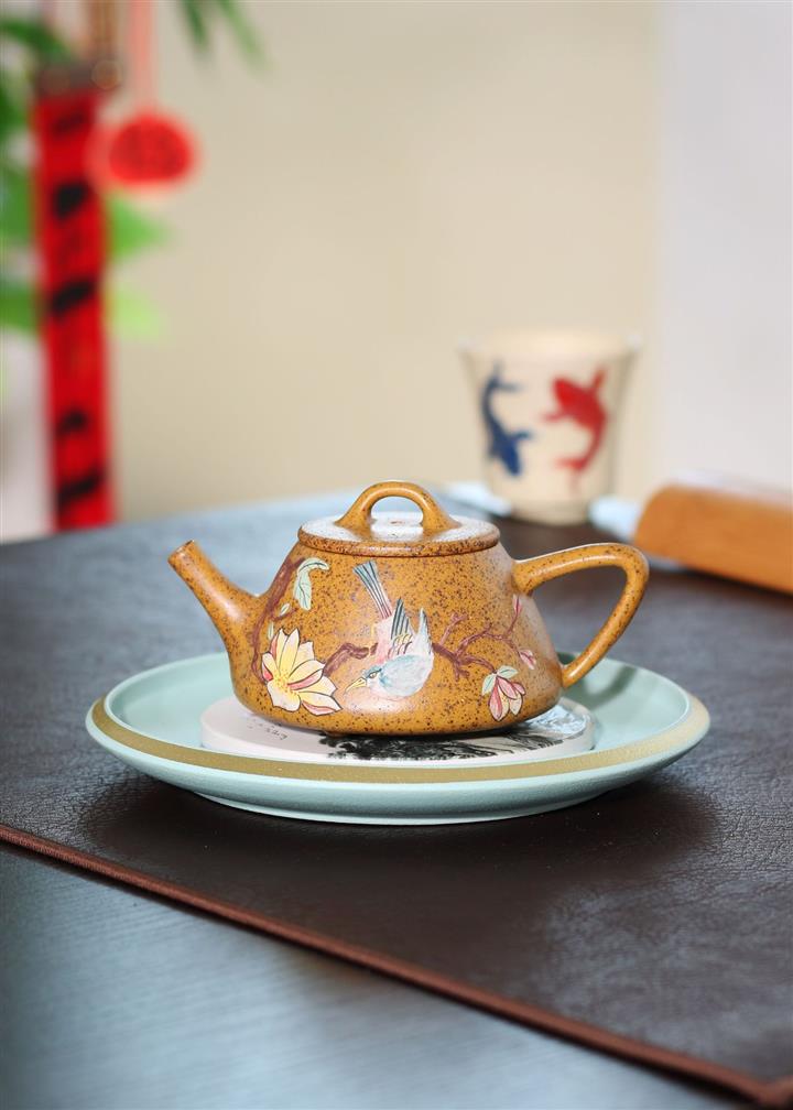 260cc原礦段泥柴燒花鳥合歡泡茶壺POT8410