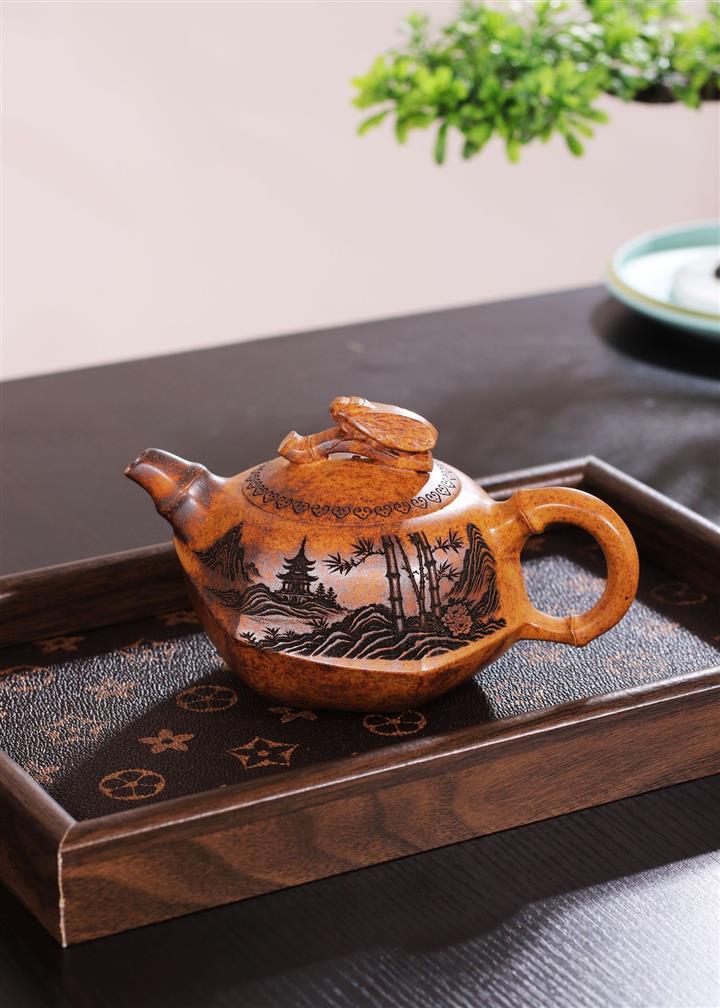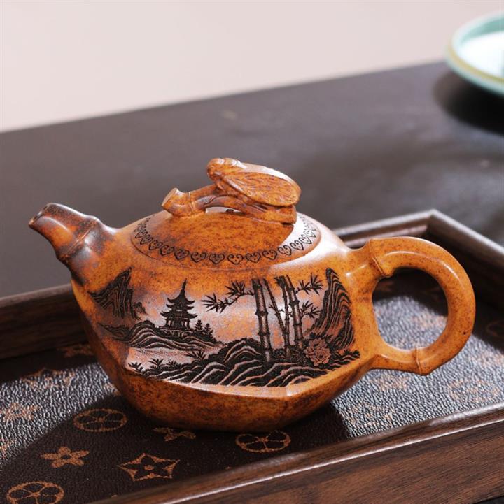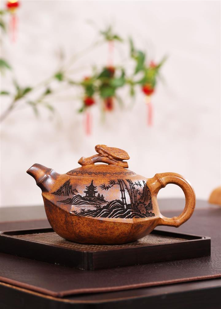 330cc原礦綠泥竹林隱士竹段茶壺POT8528