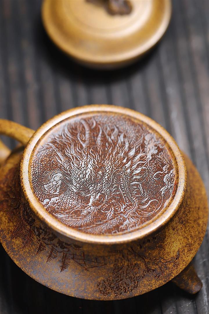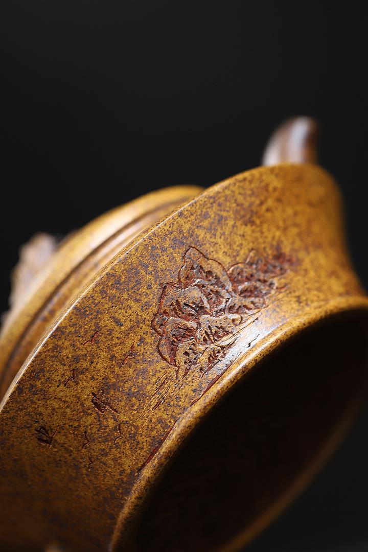 原礦紫泥刻繪石瓢紫砂壺POT4956