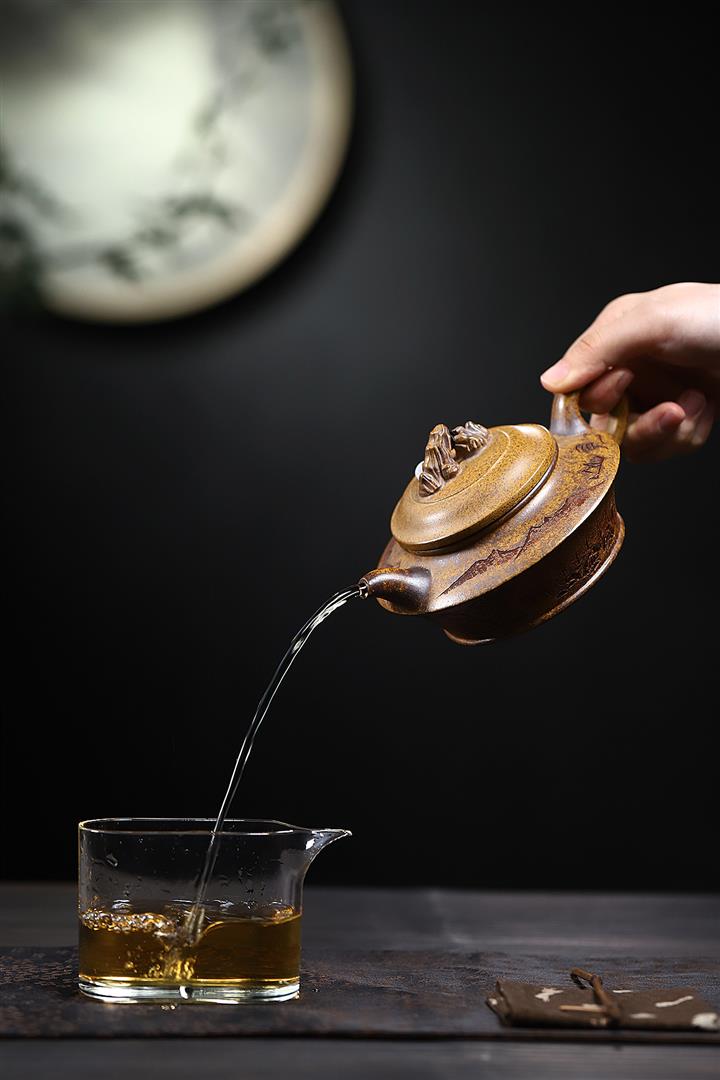 【泥料特點】砂土氣重,似淳實農民,日久使用,漸露鋒芒,養成變化,溫潤莊重。紫砂是壹種雙重氣孔結構的多孔性材質,氣孔微細,密度高。用紫砂壺沏茶,不失原味,且香不渙散,得茶之真香真味。紫砂使用越久,壺身色澤越發光亮照人,氣韻溫雅。紫砂壺長久使用器身會因撫摸擦拭,變得越發溫潤光澤。