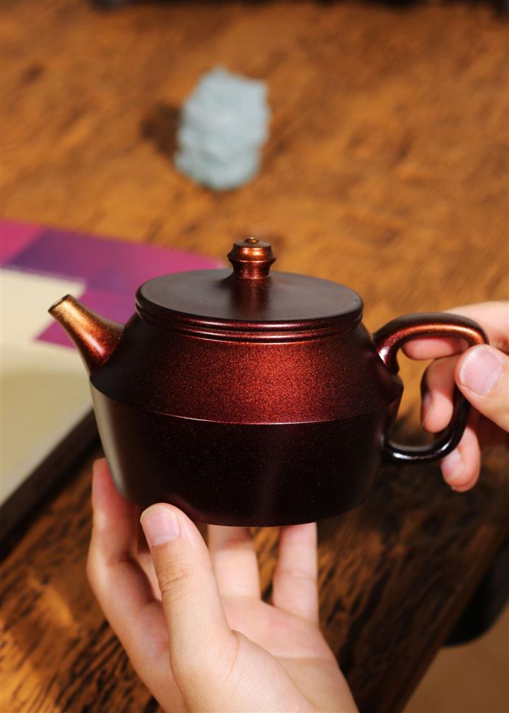 【泥料特點】砂土氣重,似淳實農民,日久使用,漸露鋒芒,養成變化,溫潤莊重。紫砂是壹種雙重氣孔結構的多孔性材質,氣孔微細,密度高。用紫砂壺沏茶,不失原味,且香不渙散,得茶之真香真味。紫砂使用越久,壺身色澤越發光亮照人,氣韻溫雅。紫砂壺長久使用器身會因撫摸擦拭,變得越發溫潤光澤。