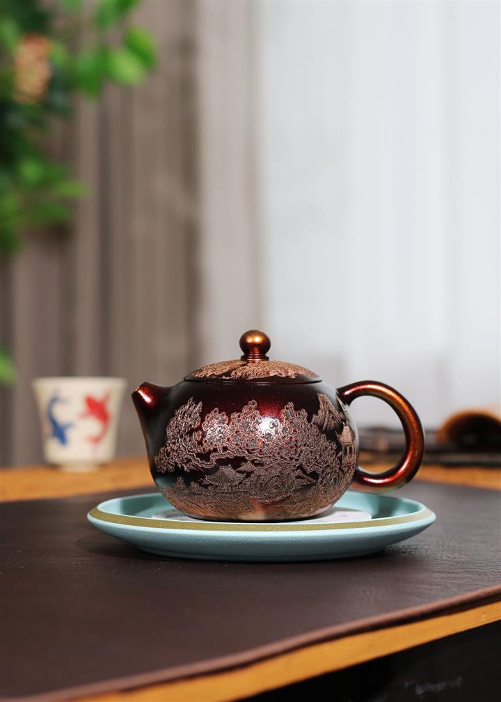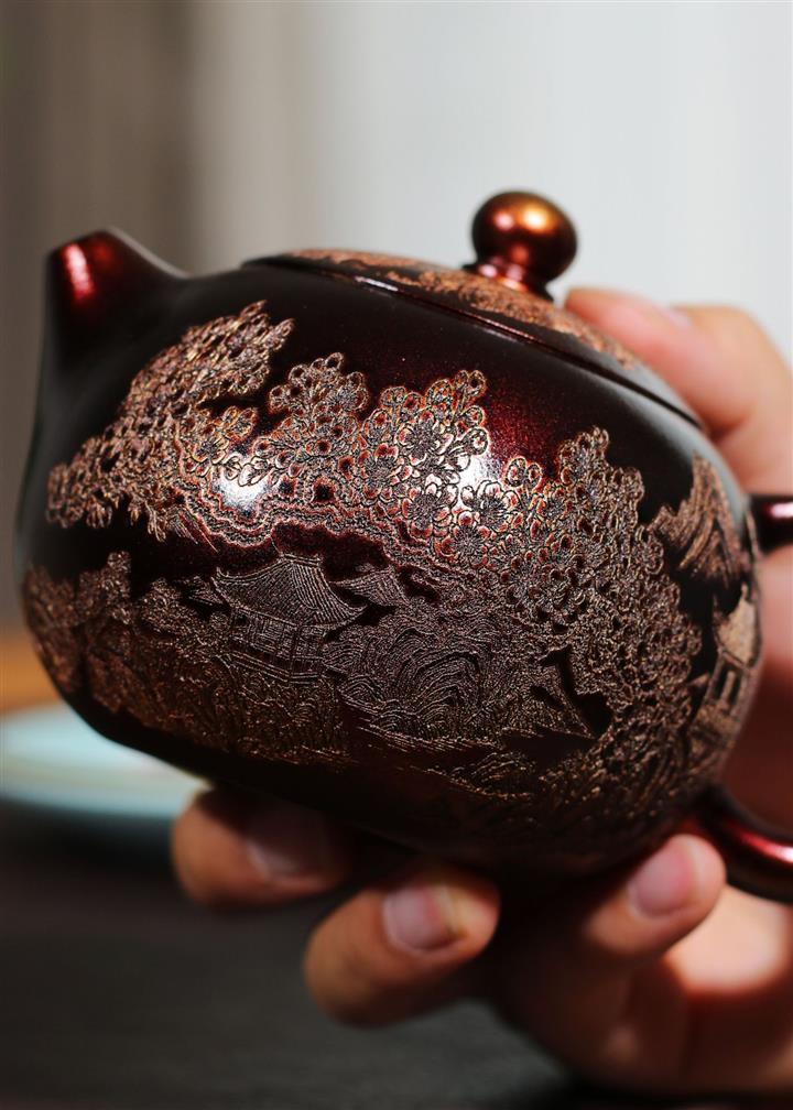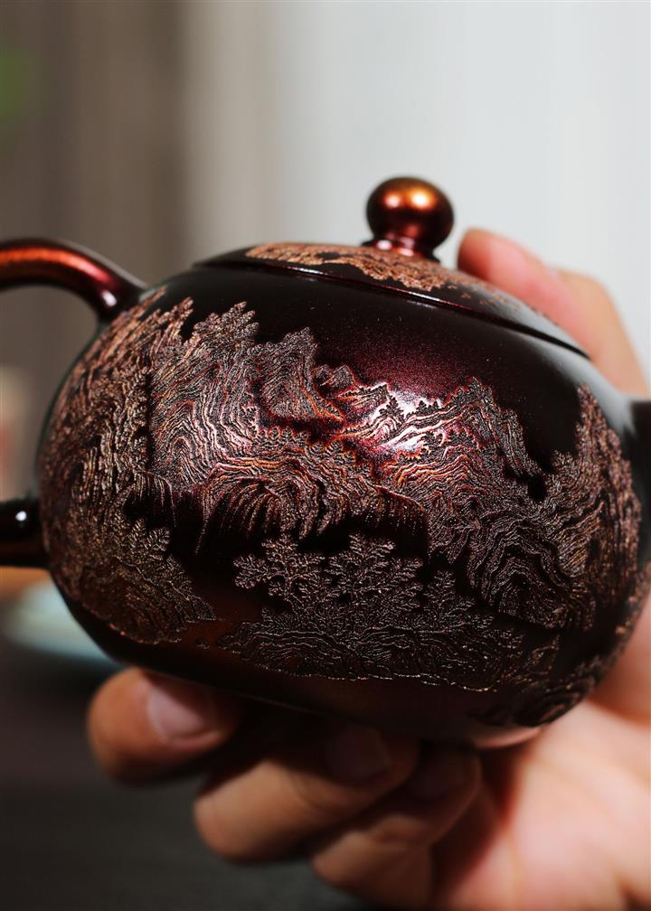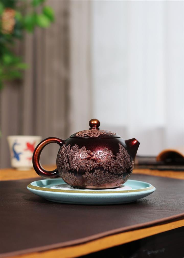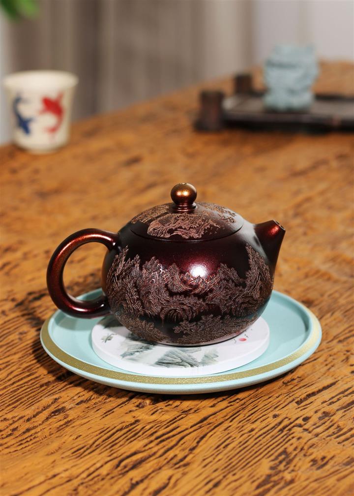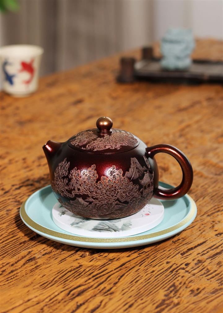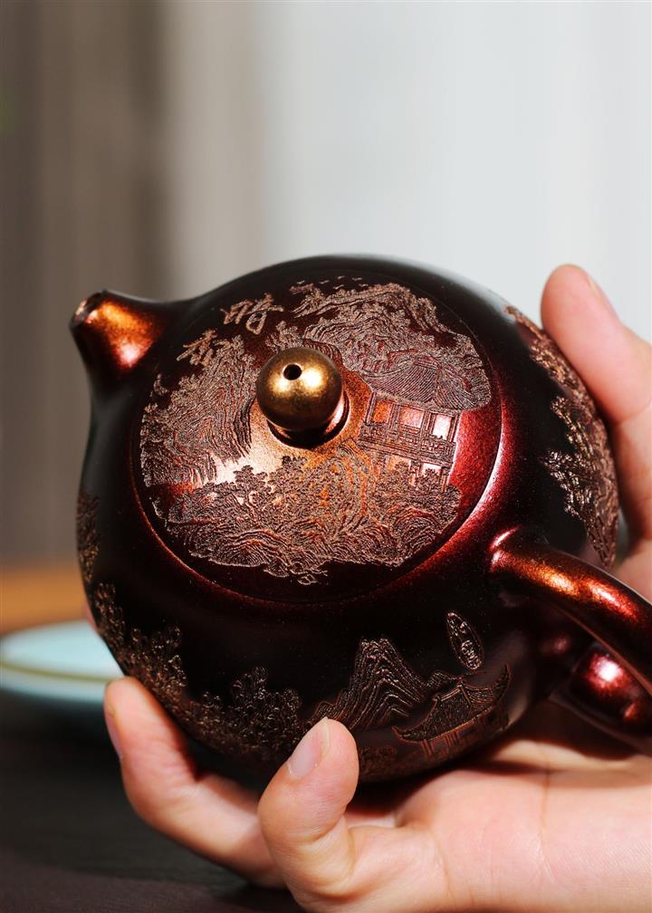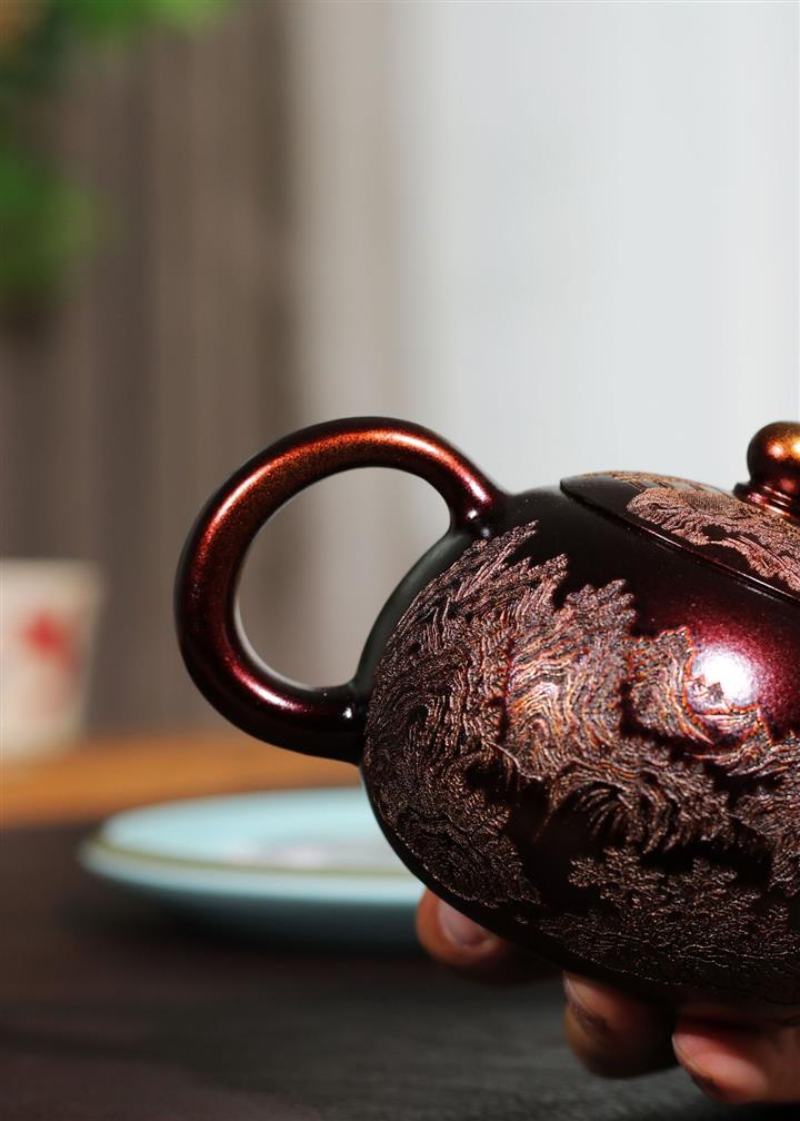 【泥料特點】砂土氣重,似淳實農民,日久使用,漸露鋒芒,養成變化,溫潤莊重。紫砂是壹種雙重氣孔結構的多孔性材質,氣孔微細,密度高。用紫砂壺沏茶,不失原味,且香不渙散,得茶之真香真味。紫砂使用越久,壺身色澤越發光亮照人,氣韻溫雅。紫砂壺長久使用器身會因撫摸擦拭,變得越發溫潤光澤。