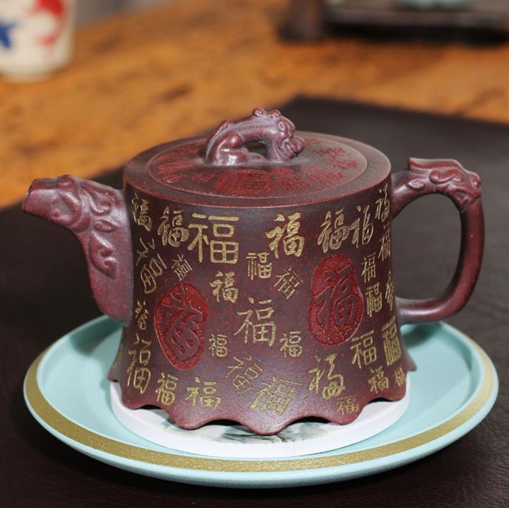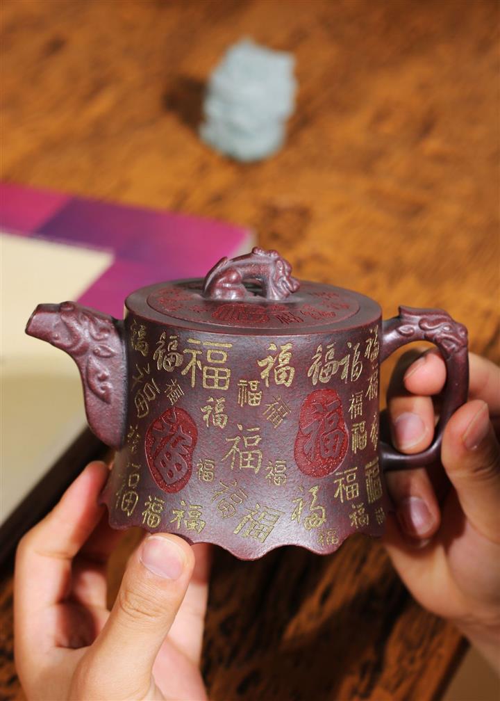 【泥料特點】砂土氣重,似淳實農民,日久使用,漸露鋒芒,養成變化,溫潤莊重。紫砂是壹種雙重氣孔結構的多孔性材質,氣孔微細,密度高。用紫砂壺沏茶,不失原味,且香不渙散,得茶之真香真味。紫砂使用越久,壺身色澤越發光亮照人,氣韻溫雅。紫砂壺長久使用器身會因撫摸擦拭,變得越發溫潤光澤。