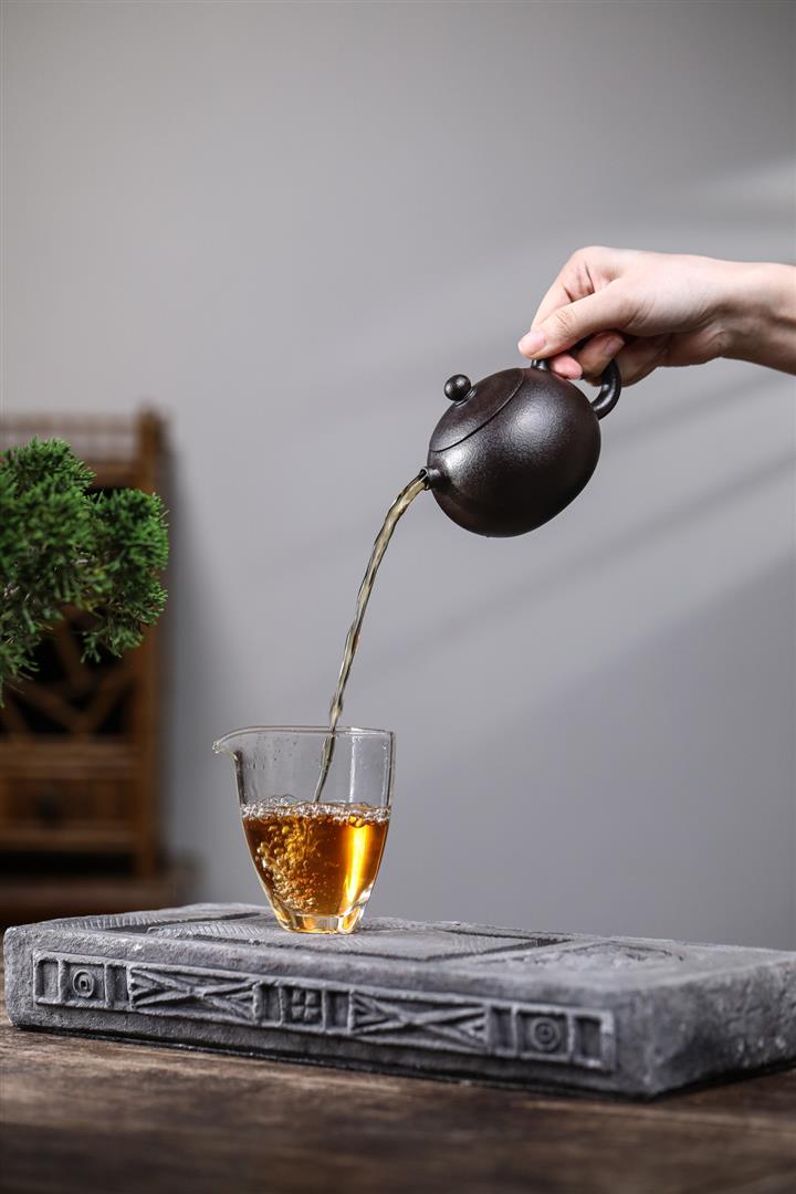 【泥料特點】砂土氣重,似淳實農民,日久使用,漸露鋒芒,養成變化,溫潤莊重。紫砂是壹種雙重氣孔結構的多孔性材質,氣孔微細,密度高。用紫砂壺沏茶,不失原味,且香不渙散,得茶之真香真味。紫砂使用越久,壺身色澤越發光亮照人,氣韻溫雅。紫砂壺長久使用器身會因撫摸擦拭,變得越發溫潤光澤。