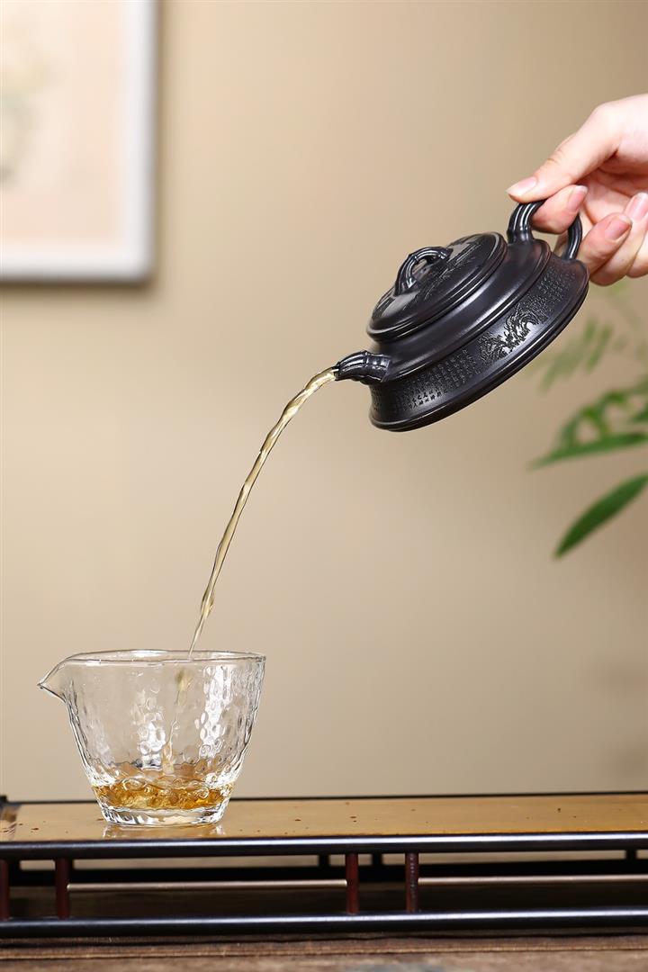 【泥料特點】砂土氣重,似淳實農民,日久使用,漸露鋒芒,養成變化,溫潤莊重。紫砂是壹種雙重氣孔結構的多孔性材質,氣孔微細,密度高。用紫砂壺沏茶,不失原味,且香不渙散,得茶之真香真味。紫砂使用越久,壺身色澤越發光亮照人,氣韻溫雅。紫砂壺長久使用器身會因撫摸擦拭,變得越發溫潤光澤。