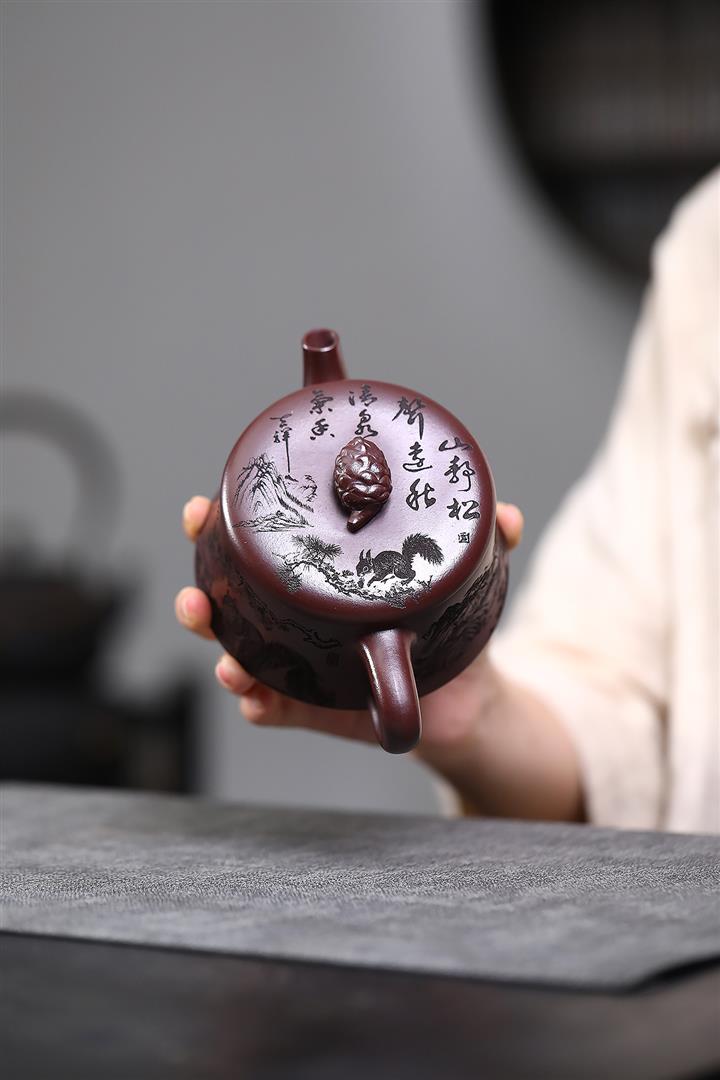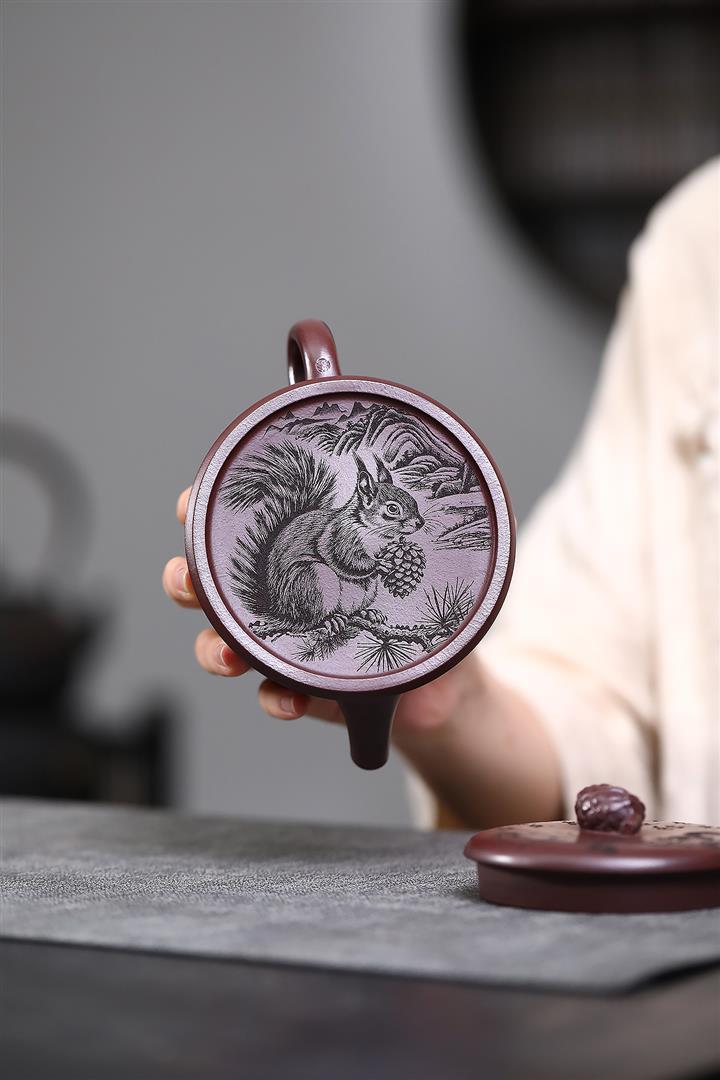 300cc原礦老紫泥碩果累累松鼠漢瓦茶壺POT8287