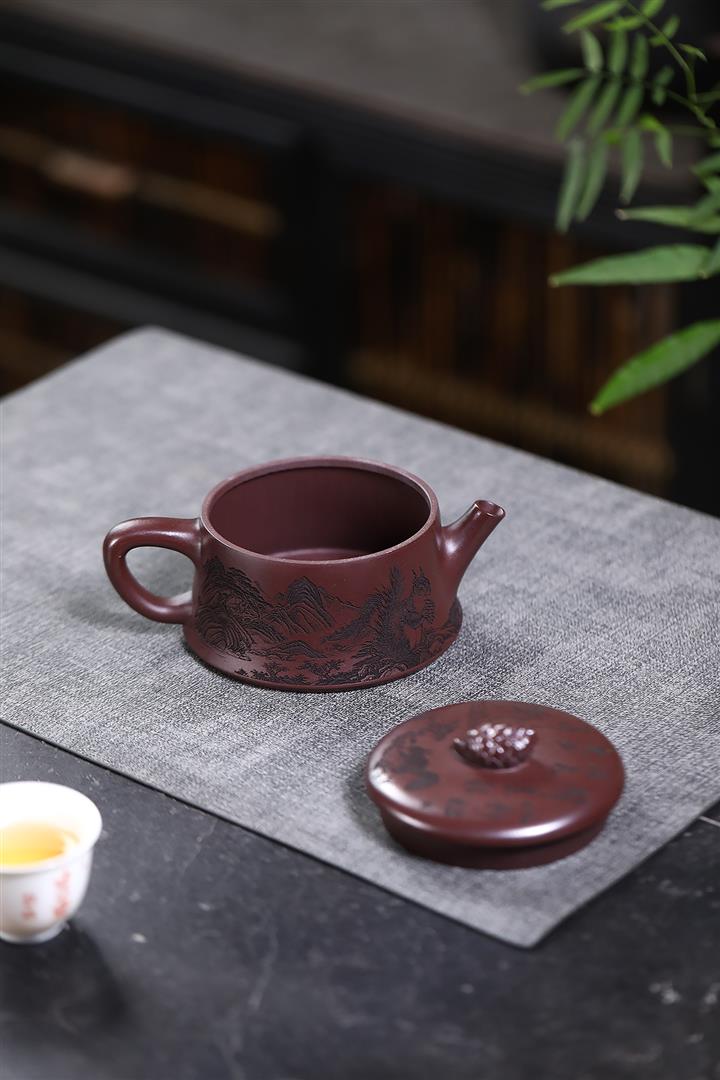 【泥料特點】砂土氣重,似淳實農民,日久使用,漸露鋒芒,養成變化,溫潤莊重。紫砂是壹種雙重氣孔結構的多孔性材質,氣孔微細,密度高。用紫砂壺沏茶,不失原味,且香不渙散,得茶之真香真味。紫砂使用越久,壺身色澤越發光亮照人,氣韻溫雅。紫砂壺長久使用器身會因撫摸擦拭,變得越發溫潤光澤。