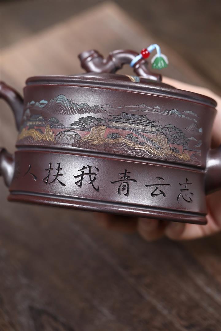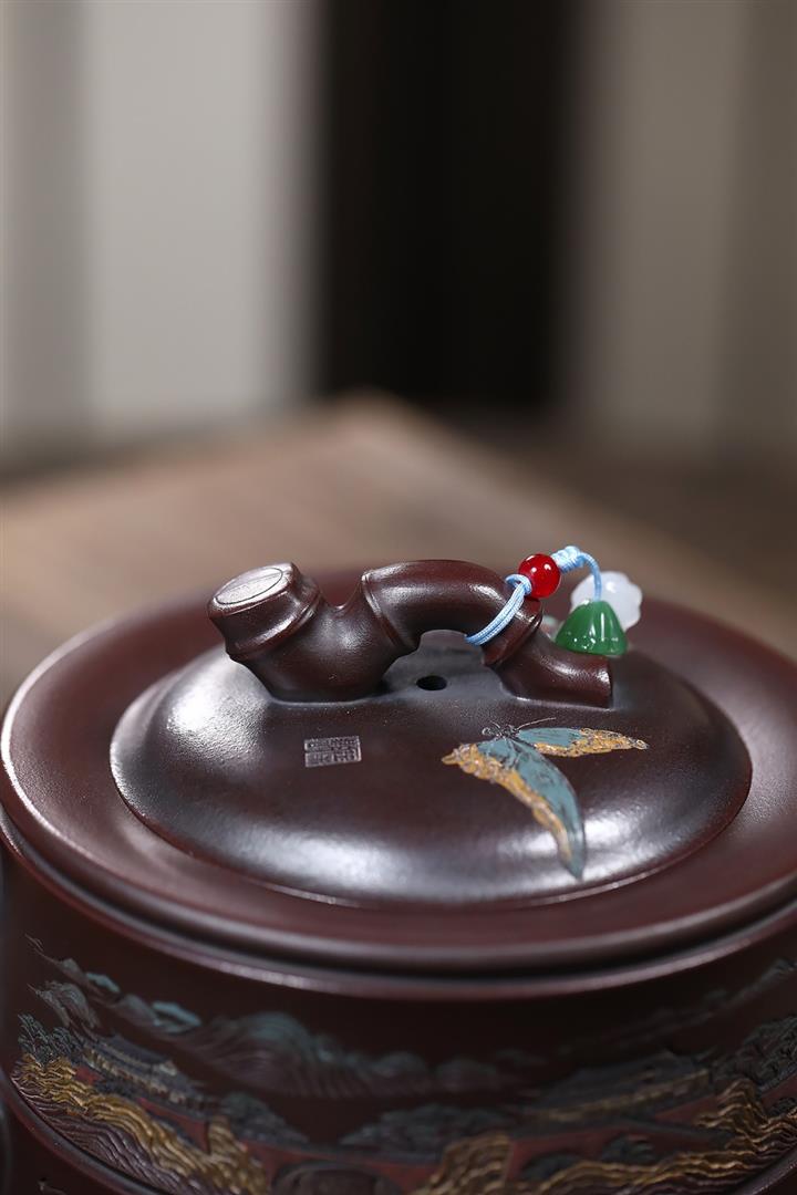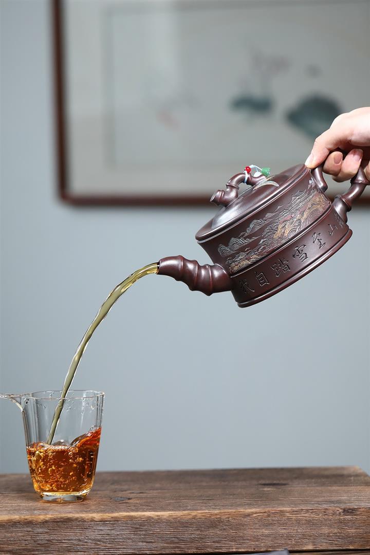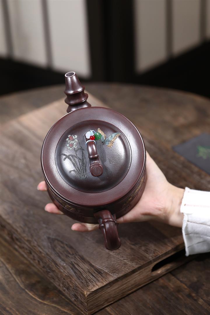 大紅袍還原燒松針壺紫砂壺POT5536