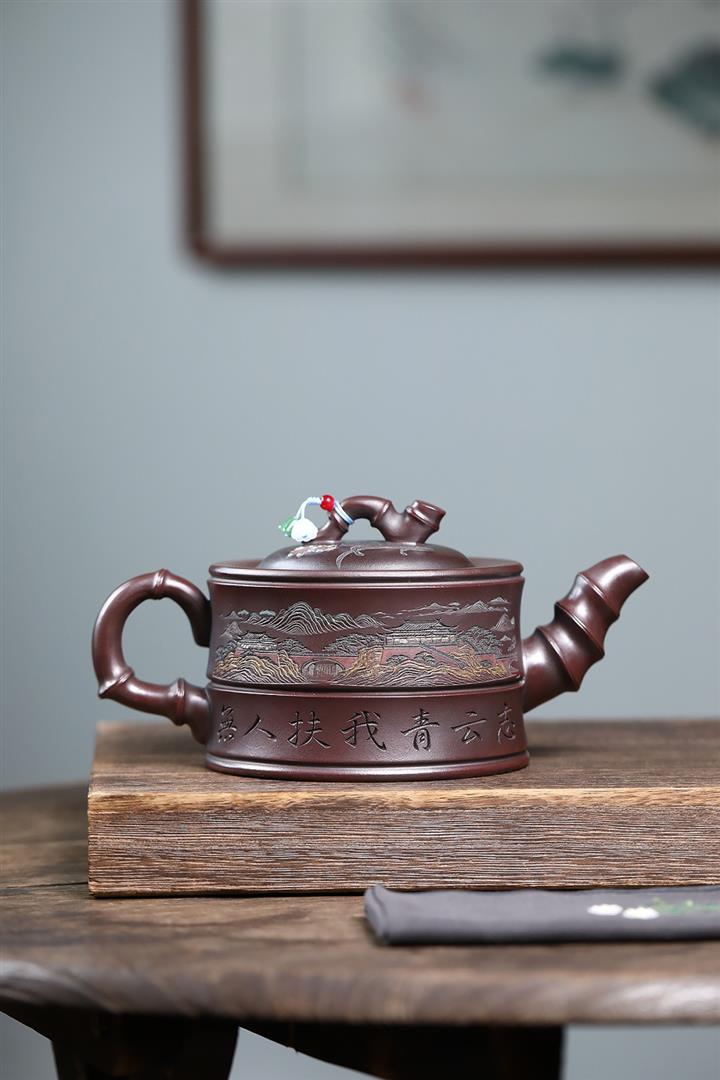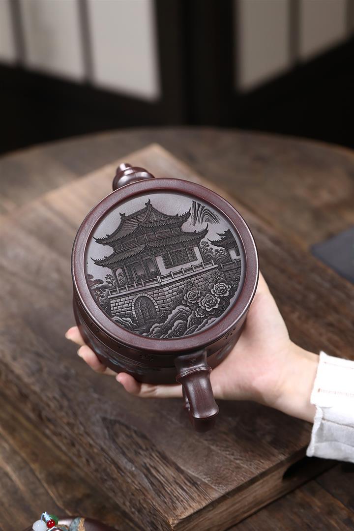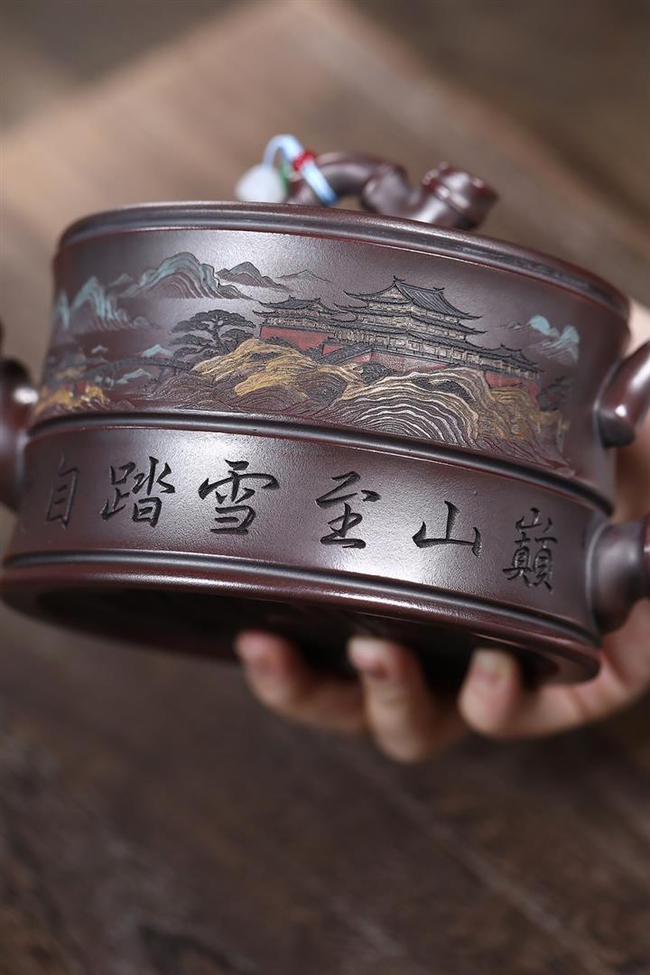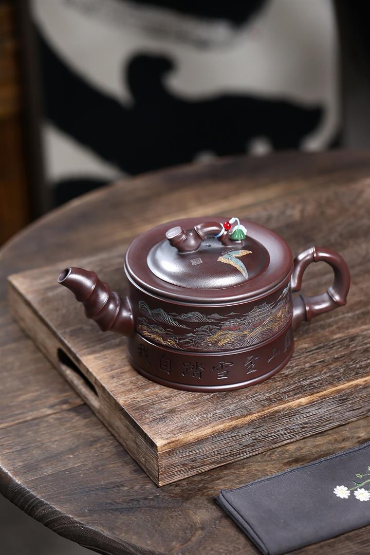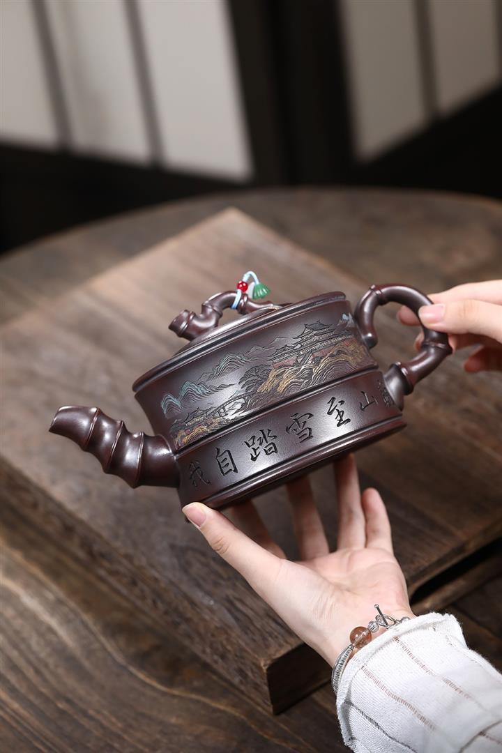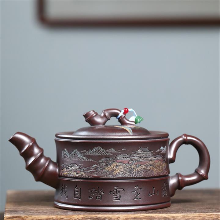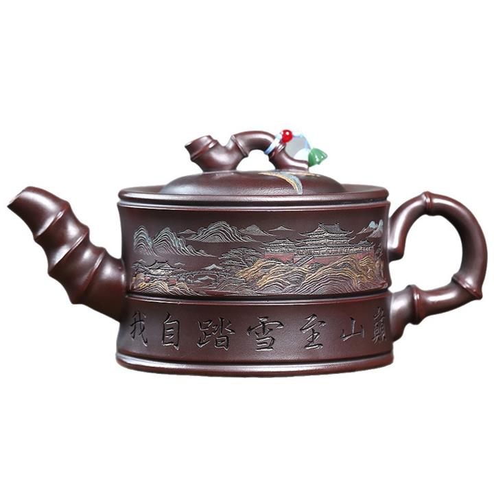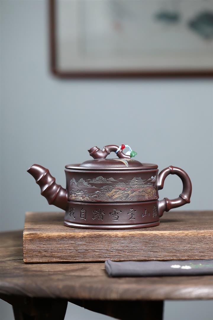800cc原礦古銅泥滿刻踏雪尋巔茶壺POT8324