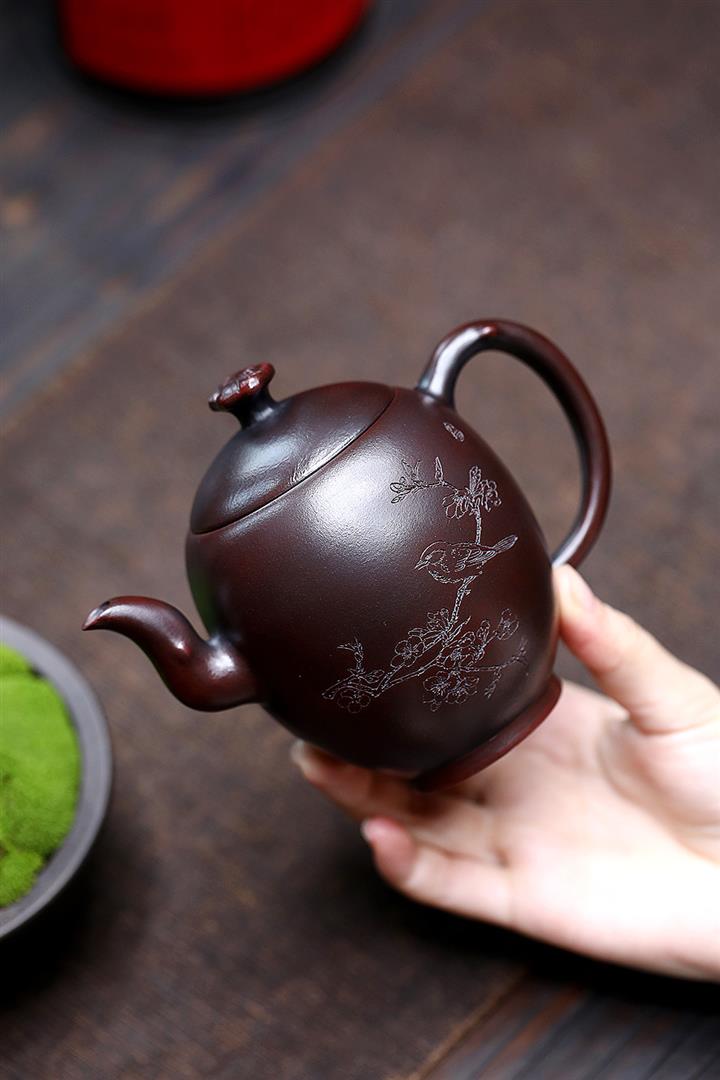 【作品介紹】此款壺形線條流暢,壺把,壺嘴,壺身壹氣呵成栩栩如生,是收藏把玩的好壺,泥料色澤古樸典雅,日久使用,漸露鋒芒,養成變化快,溫潤莊重,用其泡茶,使用的年代久,壺身就溫潤,泡出來的茶湯也就醇郁芳馨。