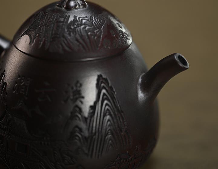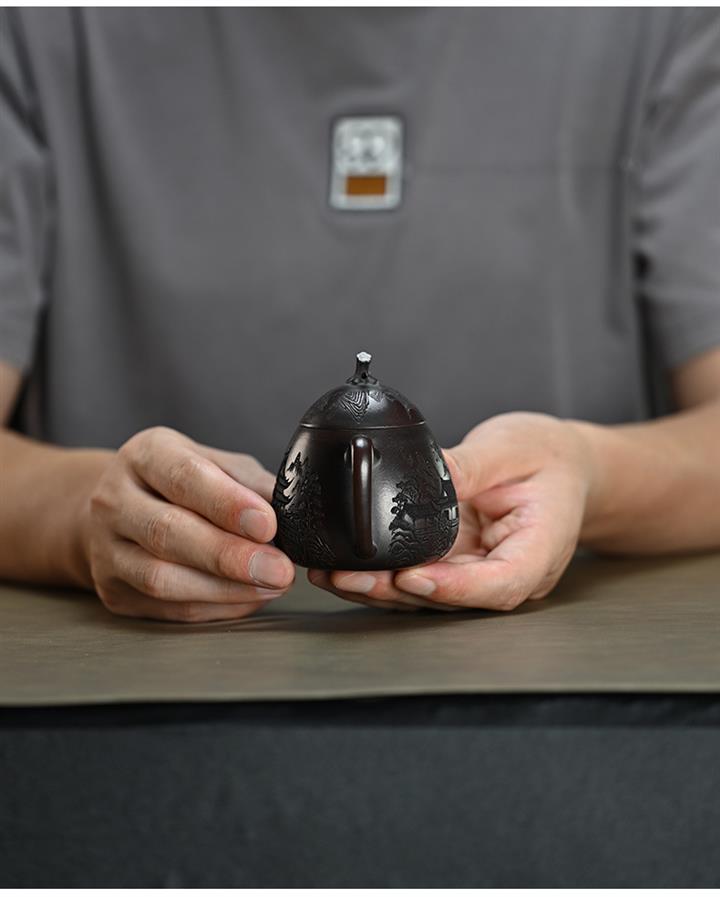 原礦大紅袍潘壺五牛圖紫砂壺POT4602