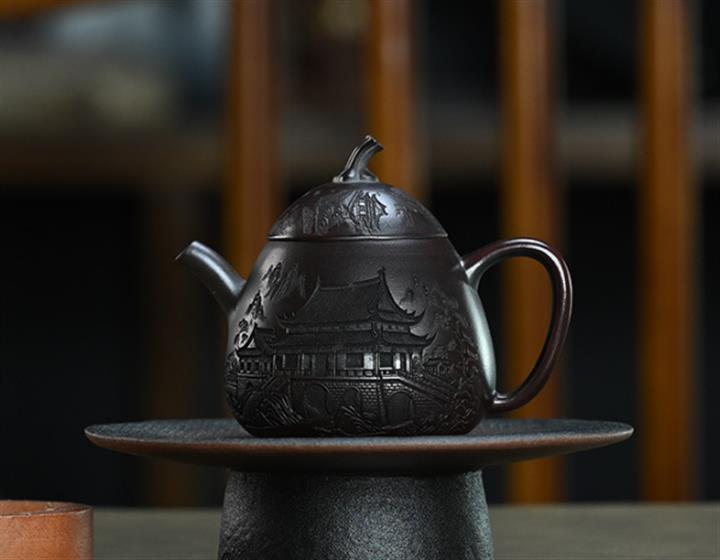 紫泥祥瑞漢瓦紫砂壺POT4610