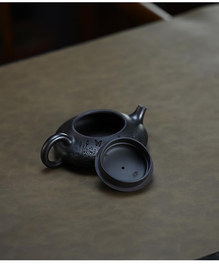 180cc原礦石黃泥逸瓢刻繪茶壺POT8361